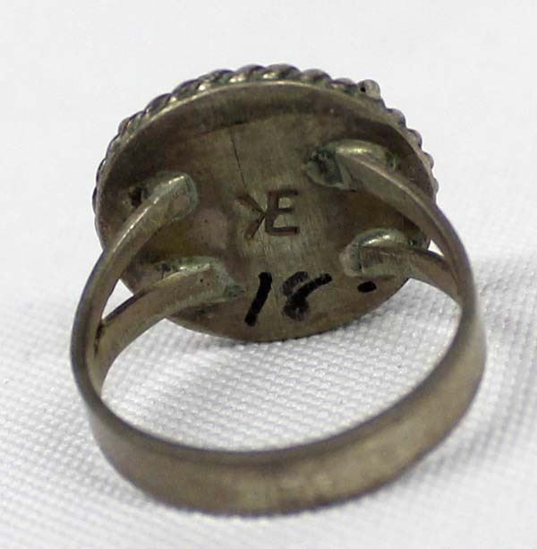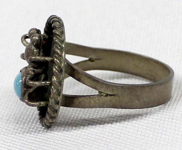 Native American Navajo Sterling Turquoise Spider Ring by Emerson Kinzel, Size 8.5, measures .75''D and is hallmarked