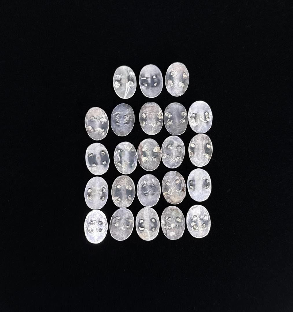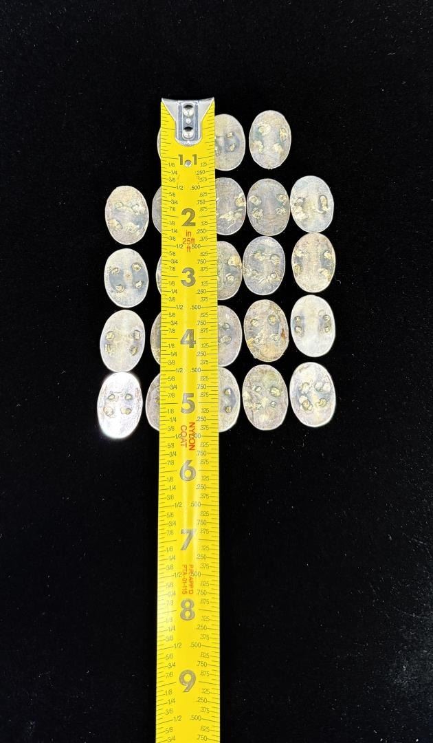 Nice grouping. Missing back attachment hooks. 60.32 grams total weight.