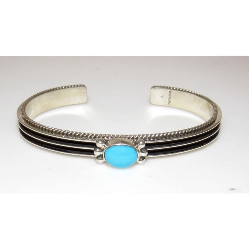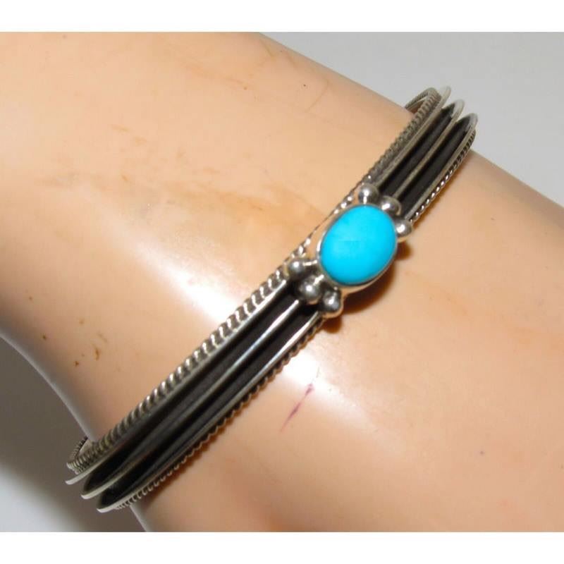 Navajo Sterling Turquoise Stacker Bracelet D. Yazzie Native American