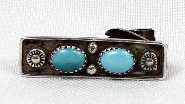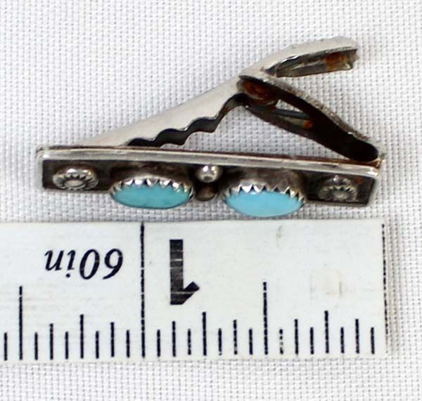 Native American Navajo Sterling Sleeping Beauty Turquoise Tie Bar Clip, measures 1.25'' x .25''
