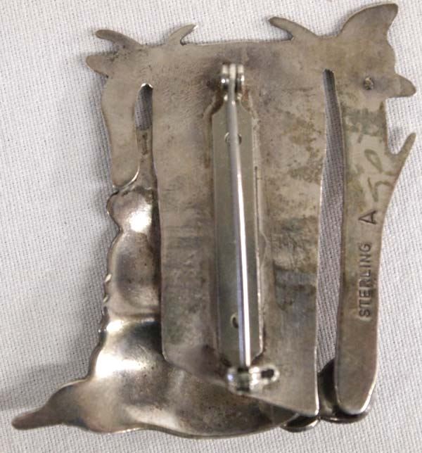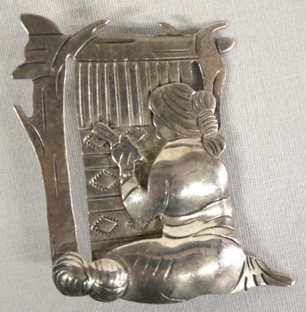 Native American Navajo Sterling Weaver Pin by Annie Chapo, hallmarked A, measures 1.5'' x 1.25'', hallmarked A and stamped sterling, 10.45g in total wt.