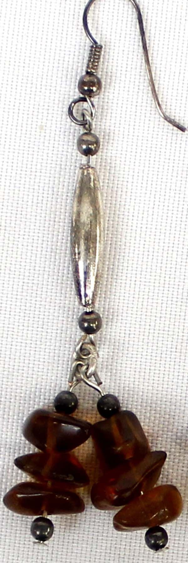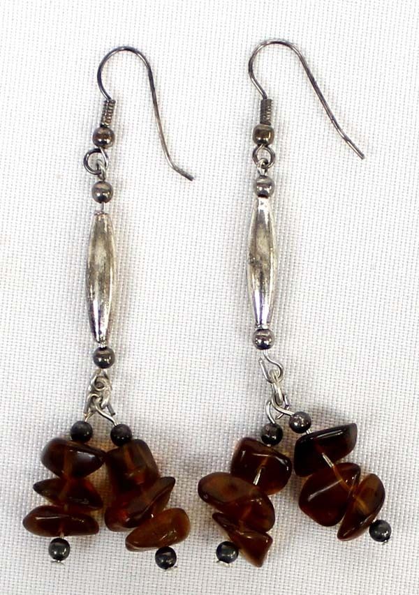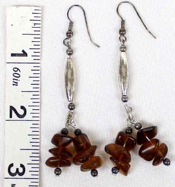Native American Navajo Sterling and Amber Nugget Earrings, measure 3''L which includes the wire x 1''W