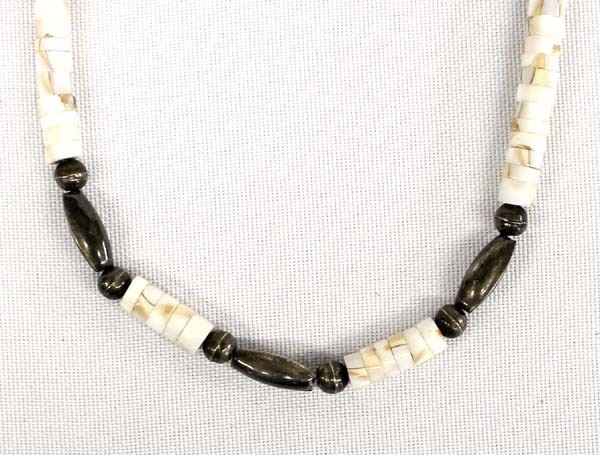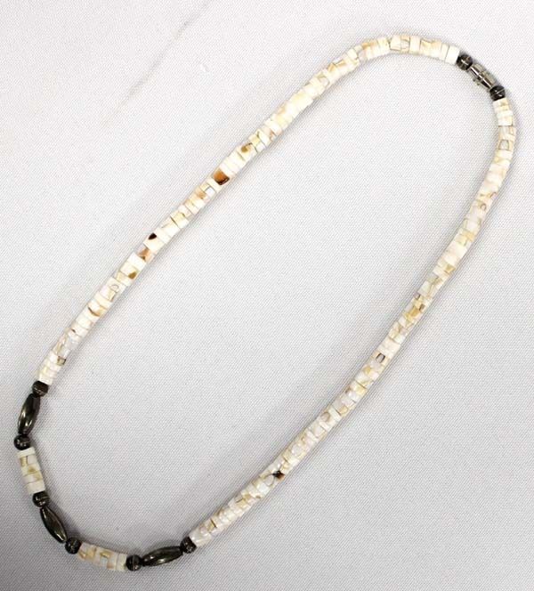 Native American Navajo Sterling and Shell Heishi Choker Necklace, measures 16''L end to end