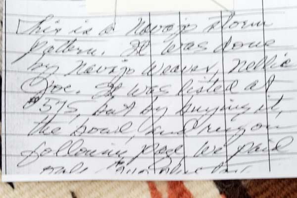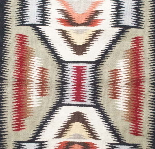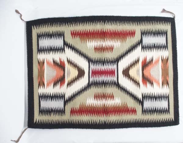 From the Lucille Frazier Estate, we have a 1980's Native American Navajo Storm Pattern Rug by Nellie Joe 1922-2015, measures 35.25''L x 26''W, 4 cornered tassels intact, beautiful colors