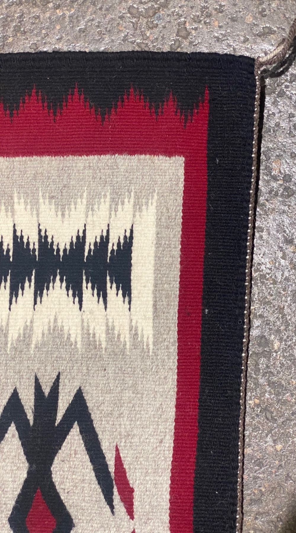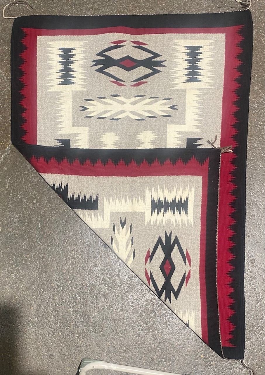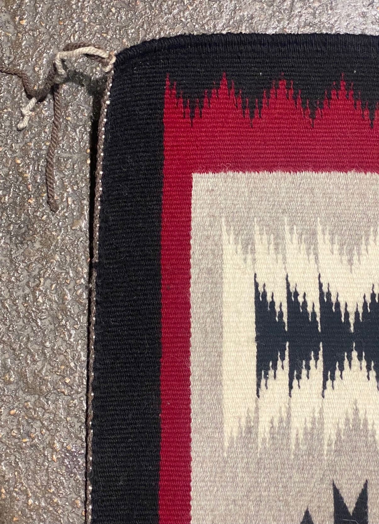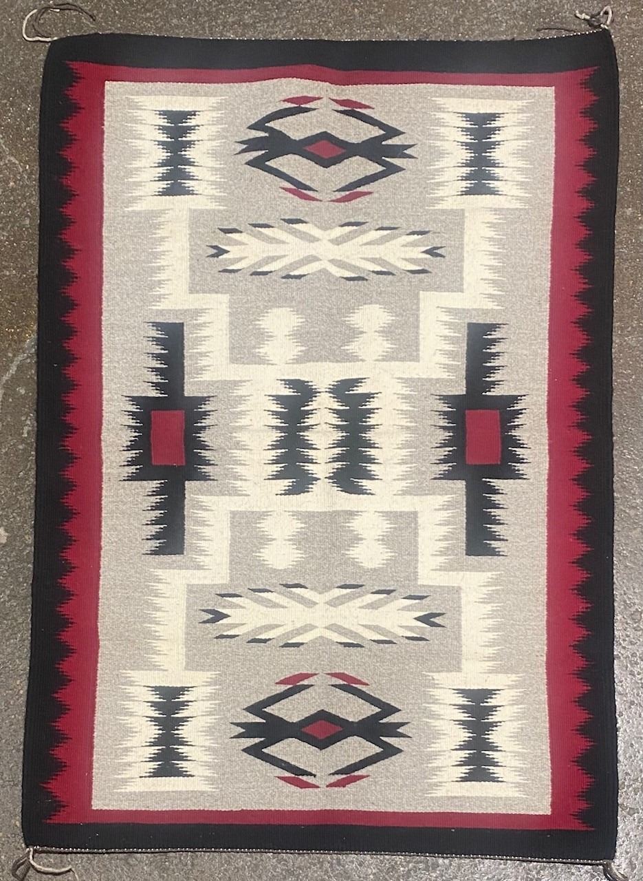 This Storm Pattern Designed Rug was woven by Susanna Begay. Nice Water Bug Feature. It dates to Circa 1990. Measures 46.25-inches by 32.25-inches.