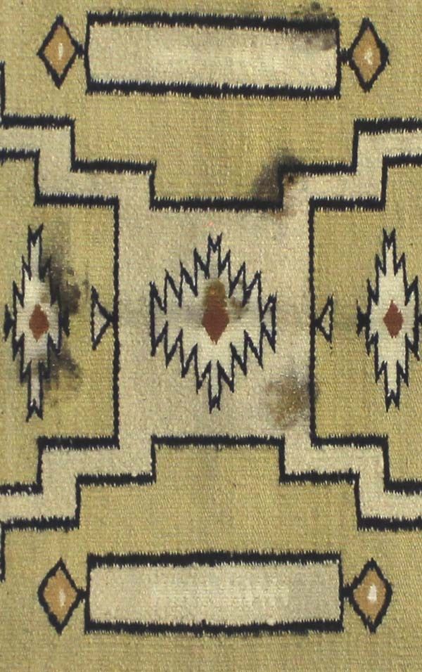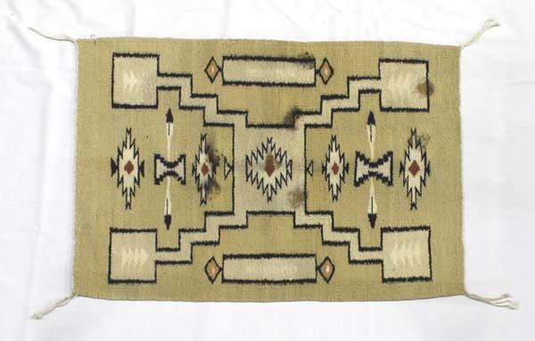 Native American Navajo Storm Pattern Wool Textile Rug, measures 19'' x 28'', 4 cornered tassels intact, stained
