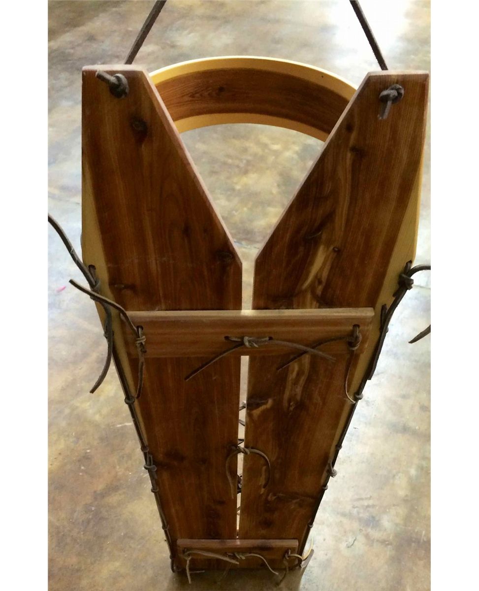 This cradleboard was made for tourist consumption, but looks like a real Navajo cradle board would. It looks great hanging on your wall. Measures approximately 32” in length and is about 11” wide.