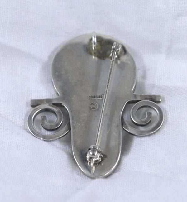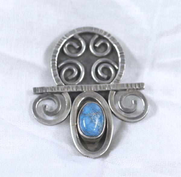 Navajo Style Silver Turquoise Pin by Miller, stamped C Sterling, measures approx. 1.75'' x 1.5''. SHI $15.