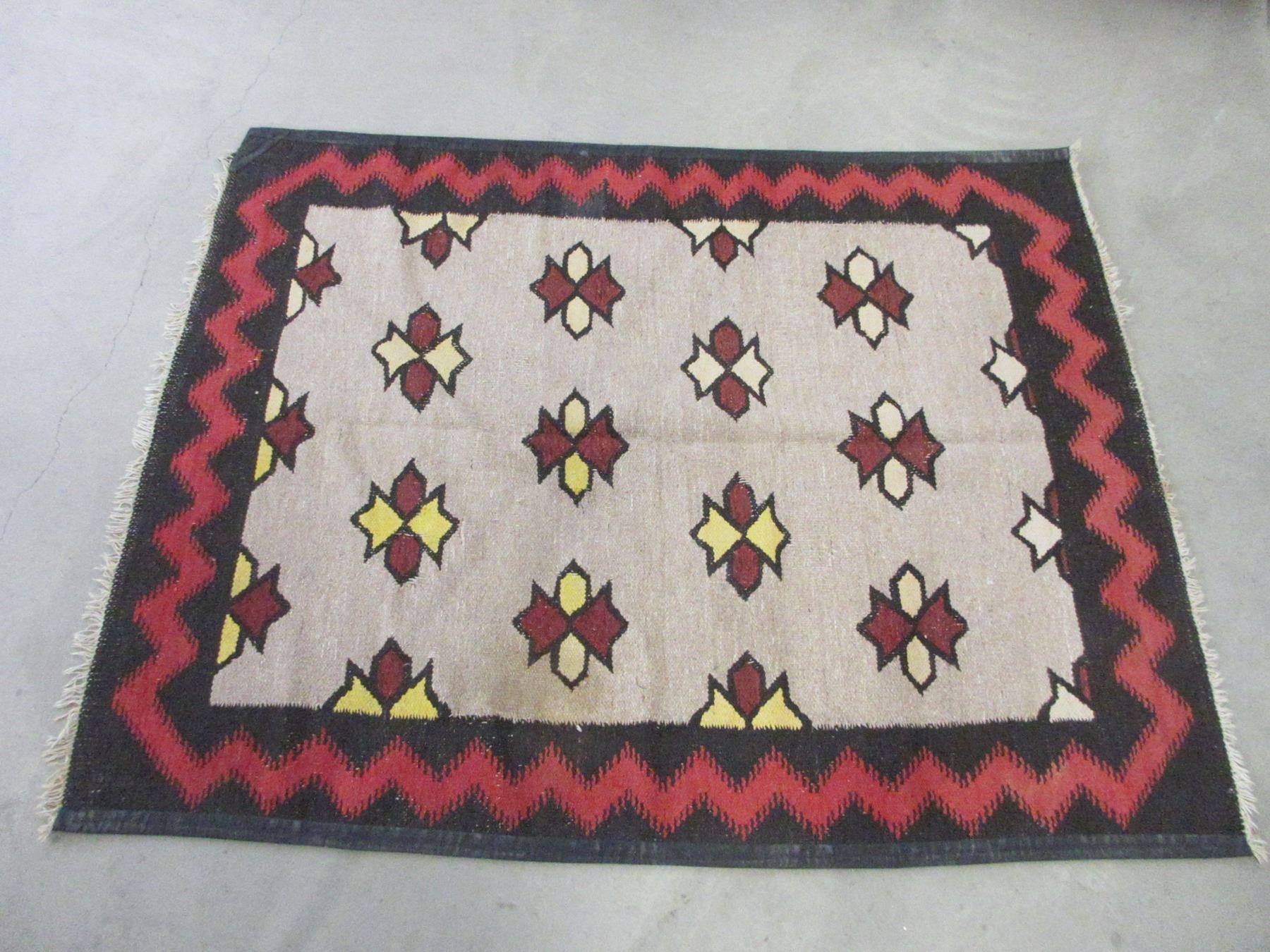 Navajo Style Wool Rug- 81" X 62"- Some Fringe Damage