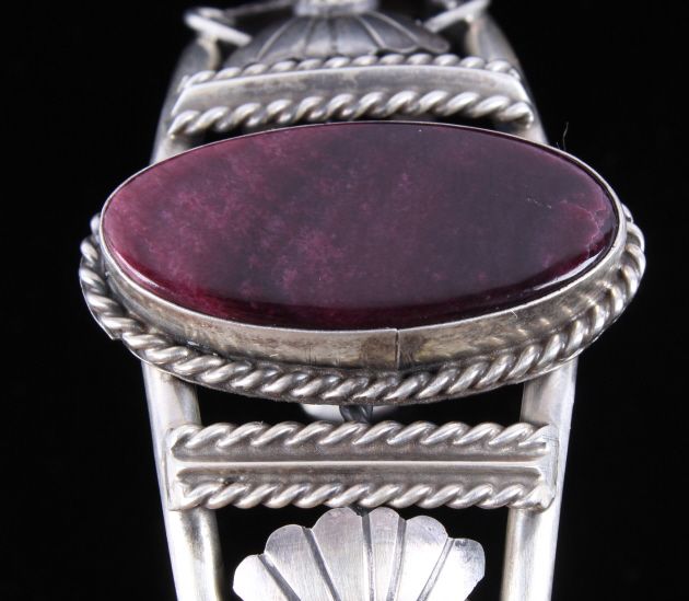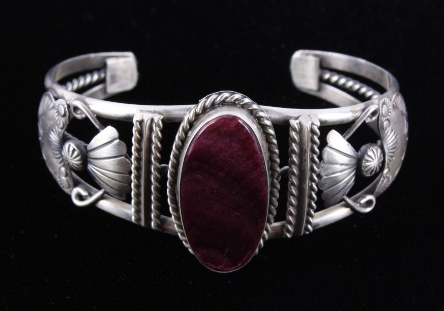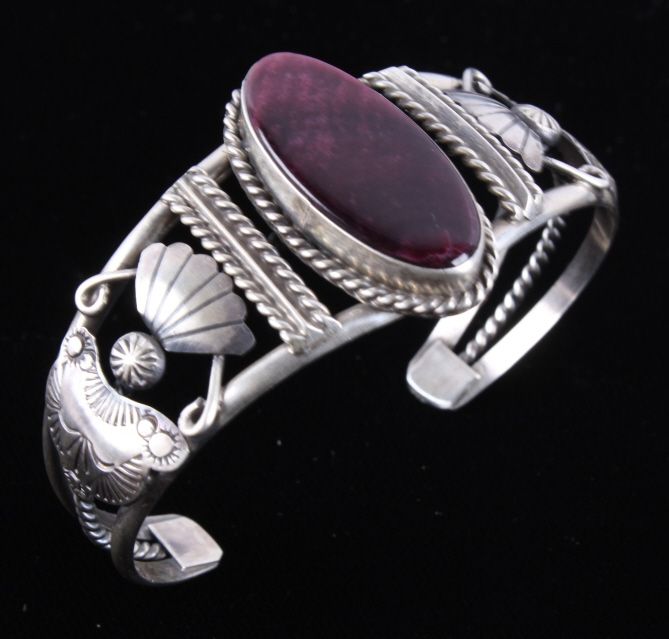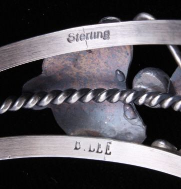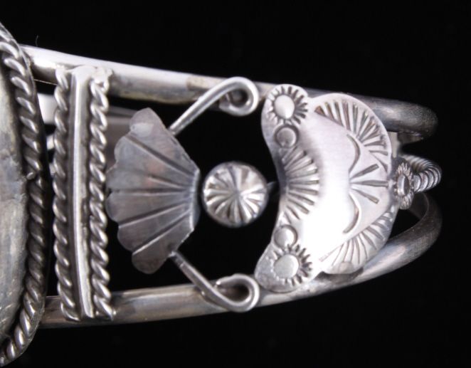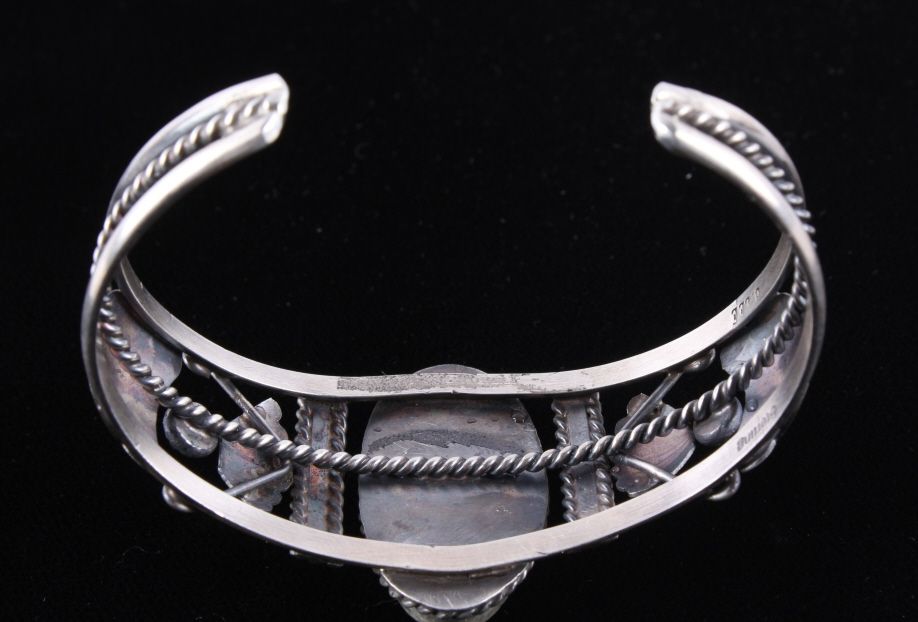 The lot features a wonderfully tooled sterling silver bracelet from Navajo Native American artist, Betta Lee. The piece is from the 1970's. Hallmarked "B Lee" & "Sterling". Measures 2"x2.5"