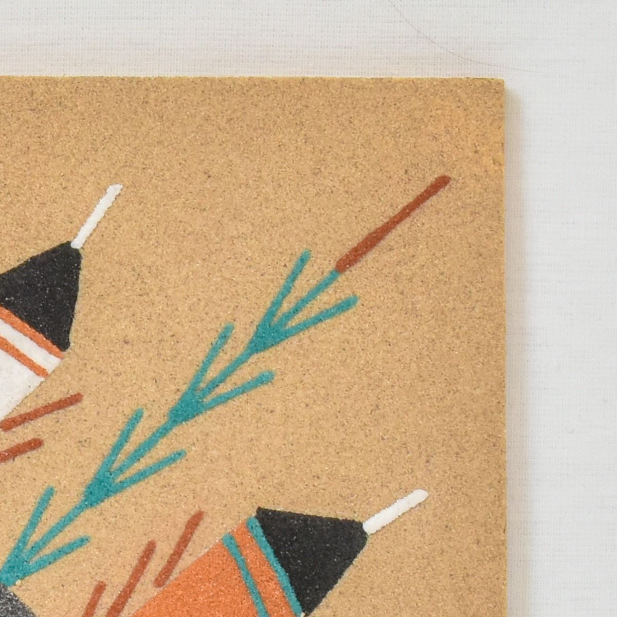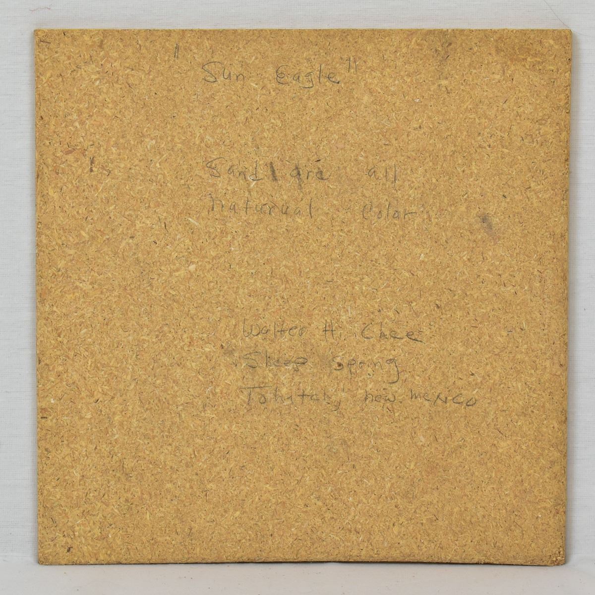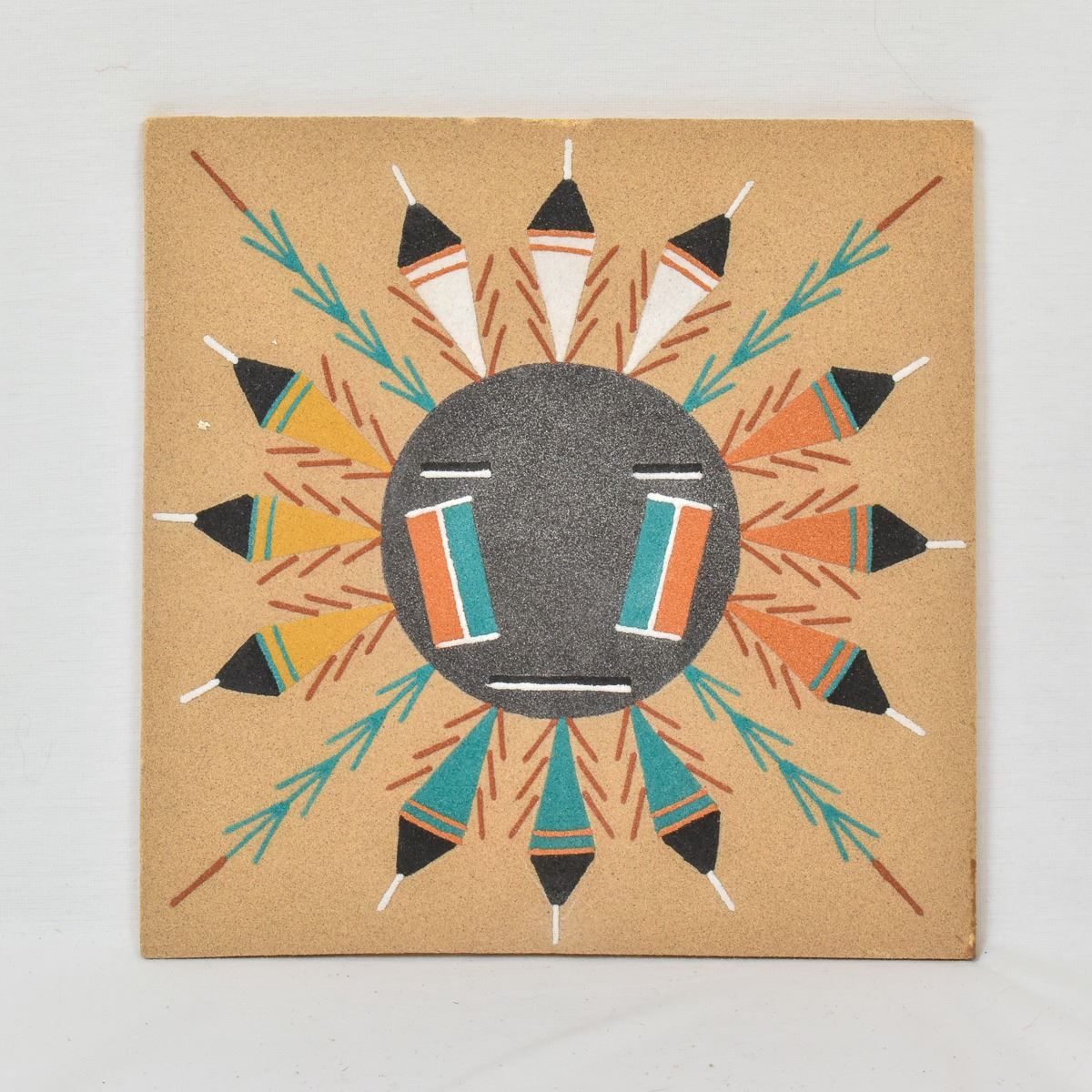 Native American Navajo Sun Eagle Sand Painting by Walter H. Chee of Sheep Spring, Tahatchy NM, measures 12'' square and is signed on the back