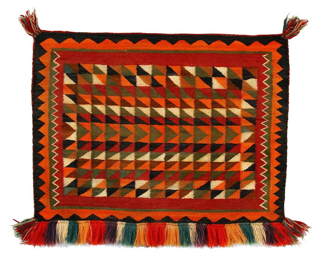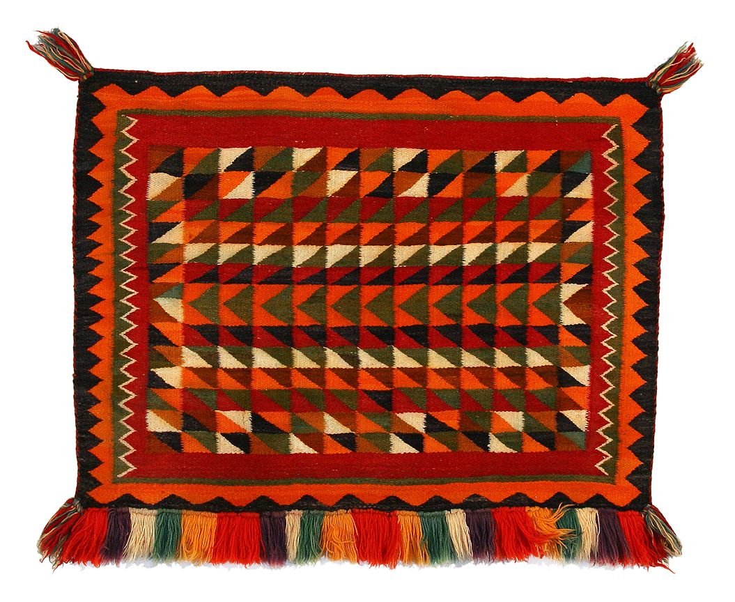 Navajo Sunday Saddle Blanket. 3'1" x 2'6" eyedazzler design. Early 20th century. (est. $900-1,200). CONDITION REPORTS: www.auctioninsantafe.com/docs/cr2012.pdf