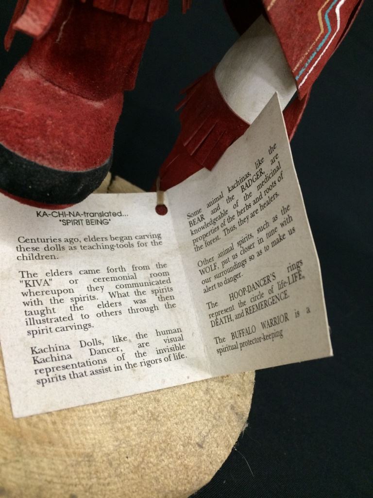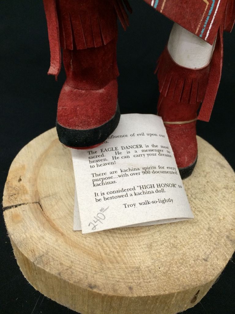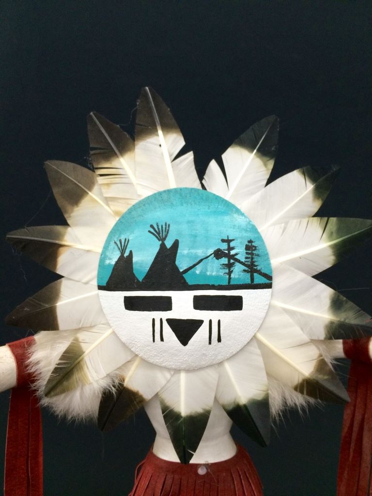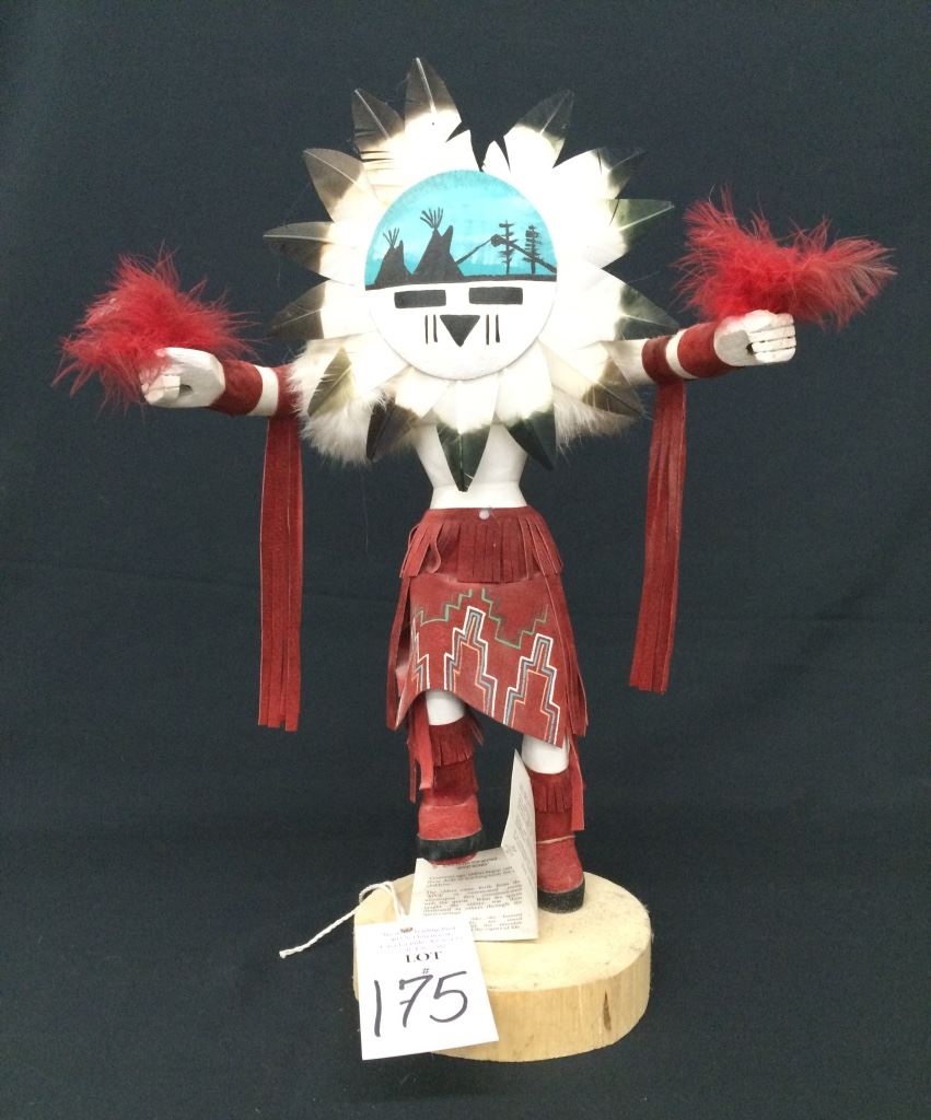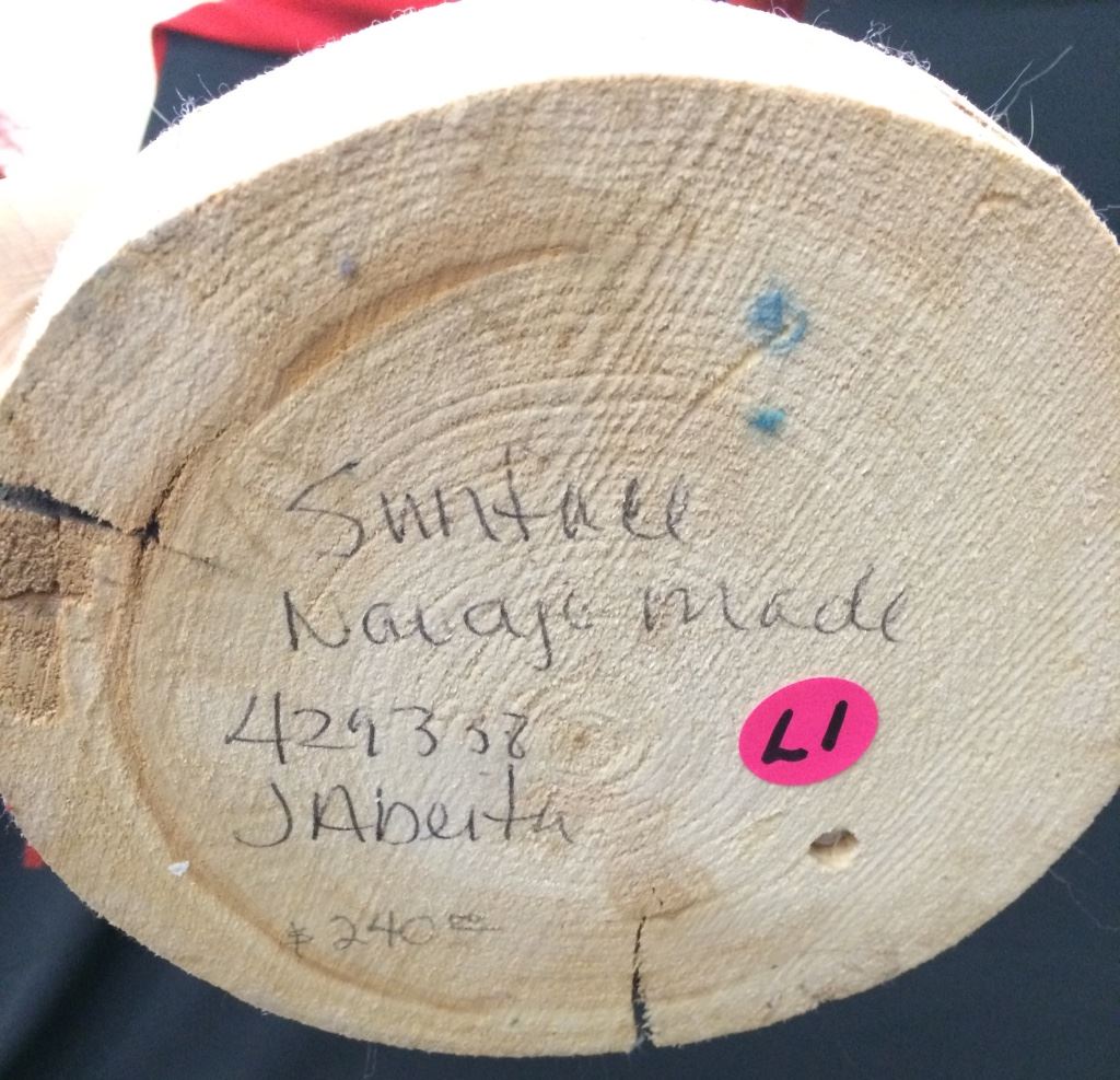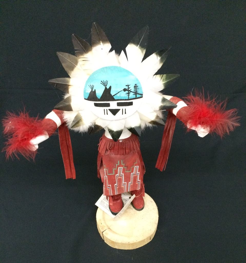 This large Sunface Kachina is signed J. Abeita, Navajo. It stands 19” tall and is in very good condition.
