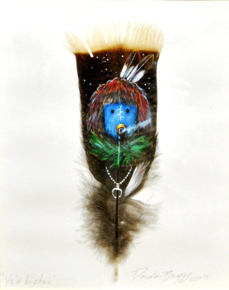 Navajo Talking God Kachina Feather Painting - Ye'ii Bichei - Donovan Begay