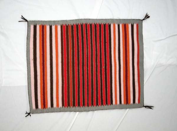 Native American Navajo Textile Rug by Charmayre Begay of Fruitland NM, measures 32'' x 24'', 4 cornered tassels intact, absolutely gorgeous colors