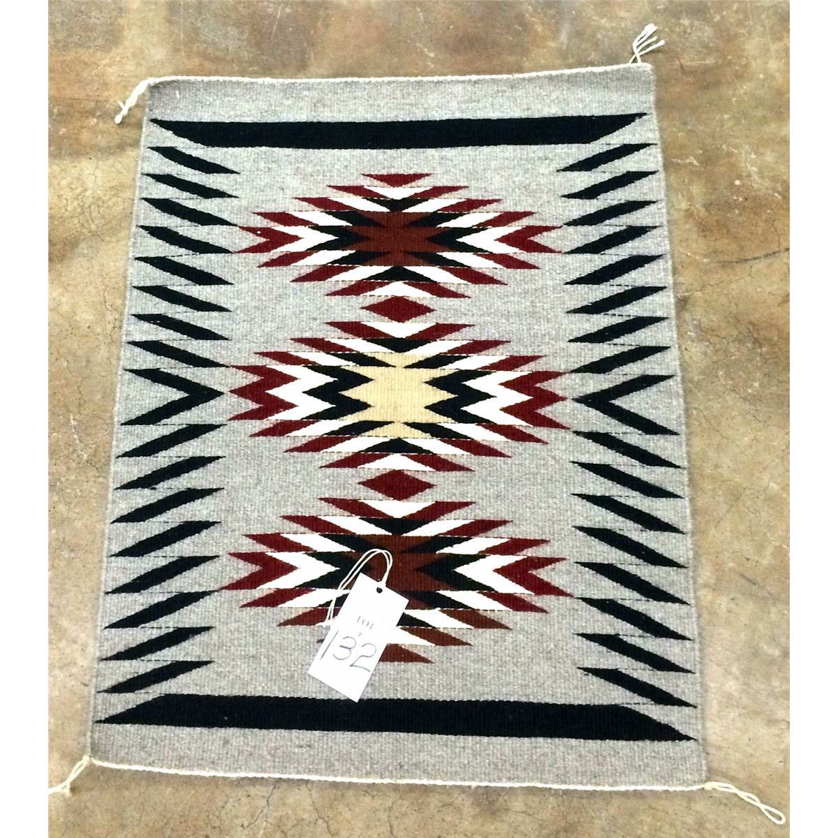 This handmade Navajo textile measures 22" x 28". In good condition.
