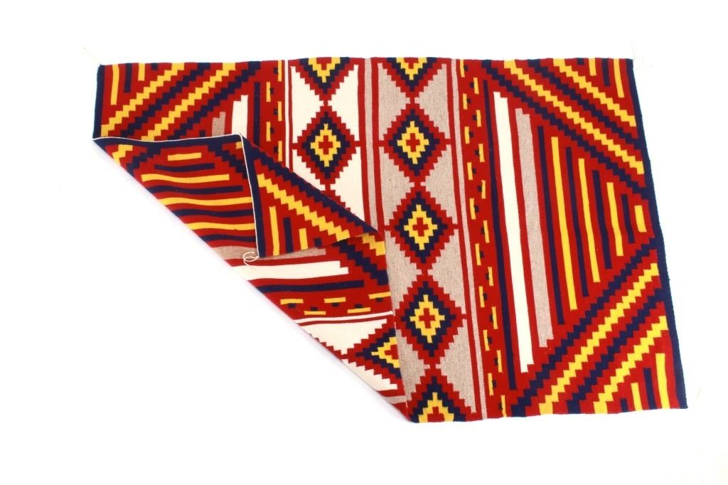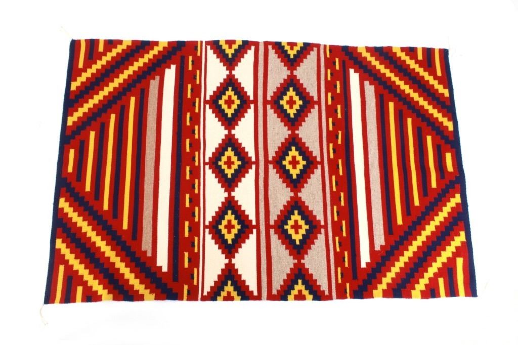 Featured in this lot is this Navajo third phases chief's blanket circa 1970's. The rug features a wonderfully and professionally crafted wool construction with a beautiful decoration with an example of central medallions and a banded design and shows coloration of white, red, blue and yellow. The condition of this rug is good with no obvious signs of damage and in good overall condition. Th measurements of this rug are 70" x 48".