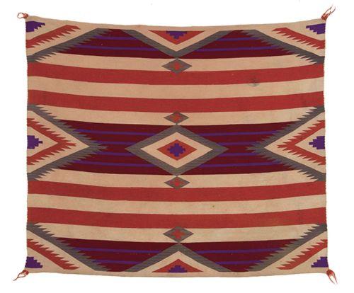 Navajo Third Phase Child's Blanket. 44" x 53". Germantown wool. 19th Century. Fine condition with minor stains. (est $3,000-4,000).