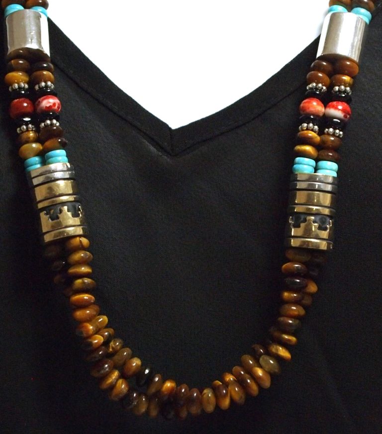 Navajo Tiger's Eye & Multi-Stone 2-Strand Necklace - Tommy Singer