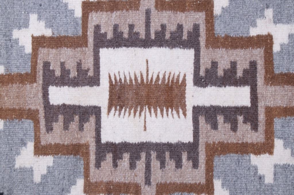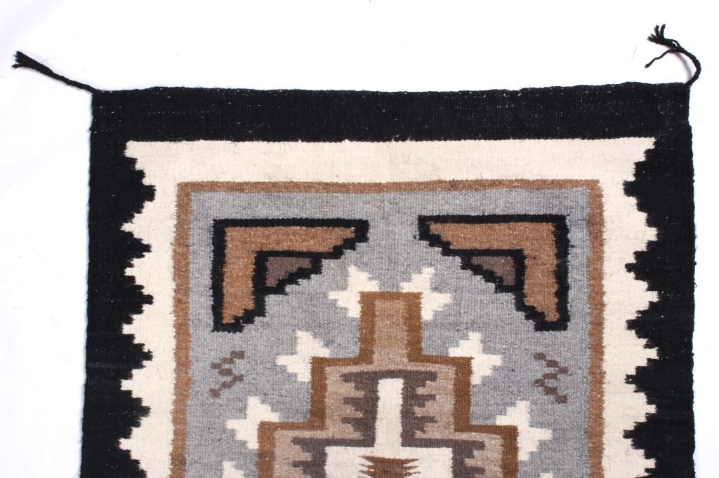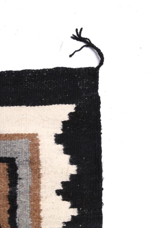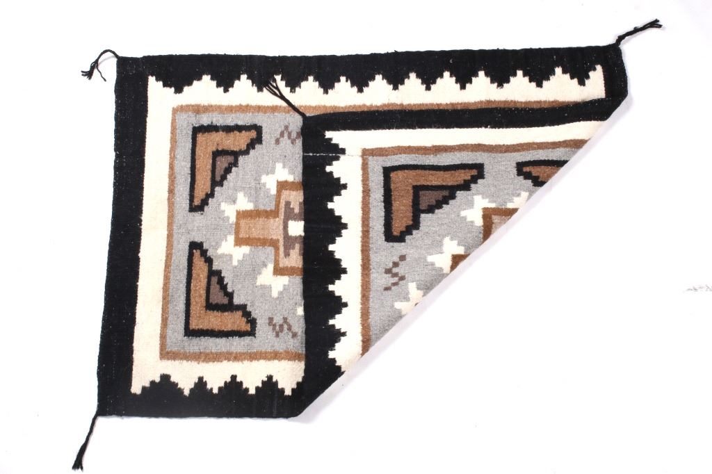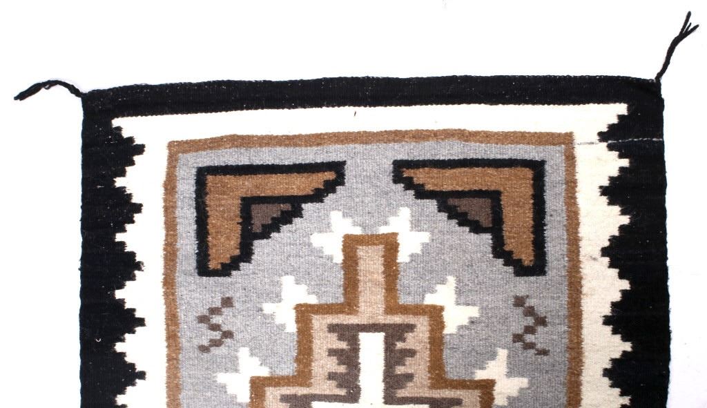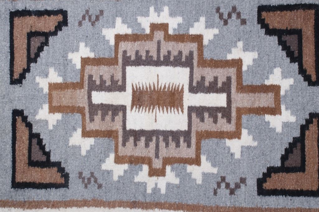 Featured in this lot is this Navajo Toadlena Two Grey Hills Corwn Point Weavers rug circa 1940's from weaver Susie Shorty. The rug features a beautiful example of Toadlena or Two Grey Hills design of the rug with a grey field and a stepped white and black border with all four tassels present. The central medallion shows a beautiful design with brown, light brown and off white coloration. The rug shows a spirit line present on one of the corner of the rug. The Crownpoint Weavers tag reads as follows: No. 2847 - Crownpoint Rug Weavers Assn. - Crownpoint, New Mexico - Weaver Susie Shorty - Address Two Grey Hills. The condition of this rug is good with no obvious signs of damage and in good overall condition. The measurements of this rug are 40 1/2" x 31". This rug features the Crownpoint Weavers identification tag present.