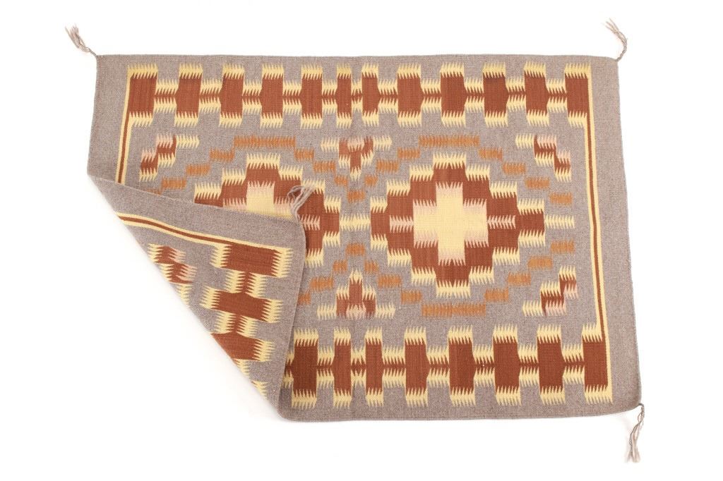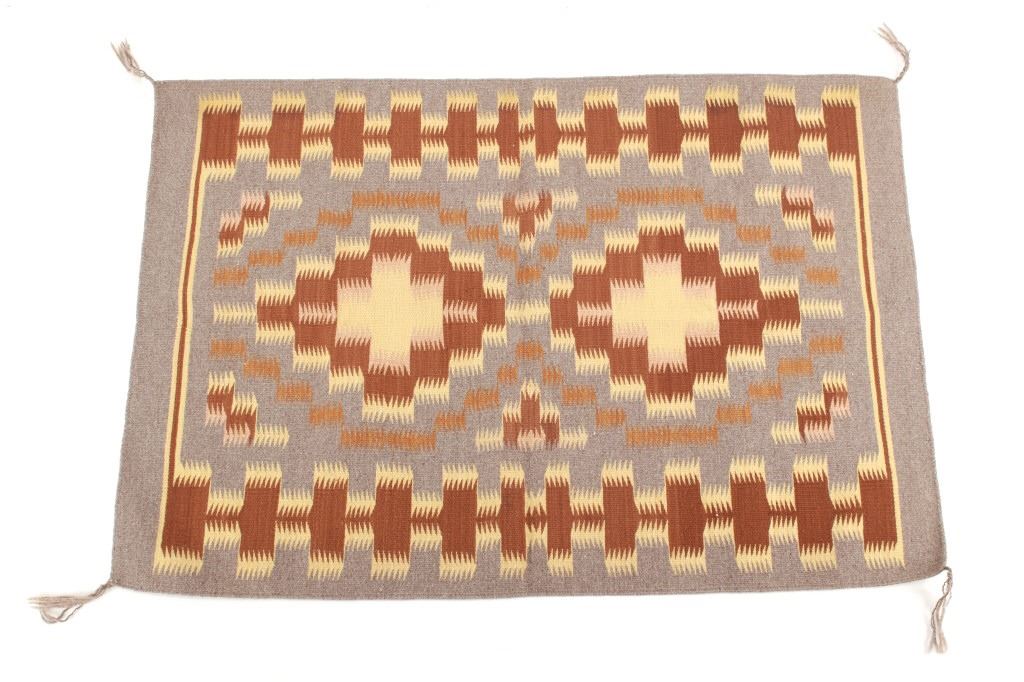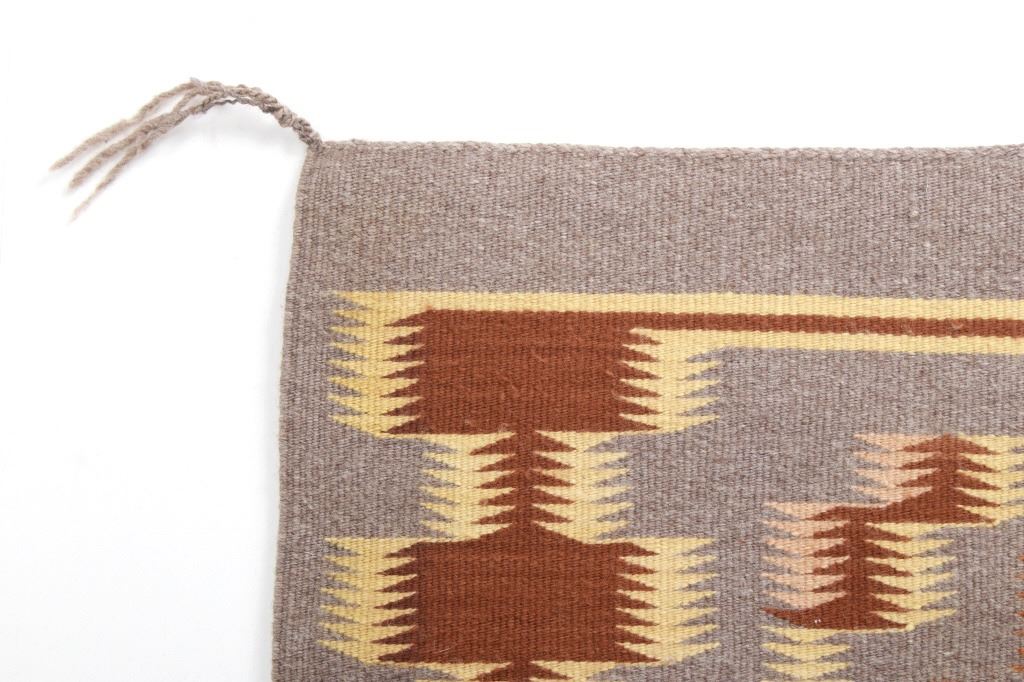 For your consideration this lot includes this wonderfully designed Navajo Toadlena / Two Grey Hills Rug. This regional style was started in 1914 by George Bloomfield and Ed Davis at the Toadlena and Two Grey Hills Trading Post. These Navajo rugs are characterized by natural browns, tan, gray, ivory, white, and black. The patterns usually have a central diamond motif and intricate patterns. The Two Grey Hills weavings are noted for their high quality. The trading post is located in northwest New Mexico, south of Shiprock and northeast of the Crystal area. Crownpoint, New Mexico has been home to a gathering of extraordinary Navajo weavers since the early 1900’s including weavers from the Lorenzo Hubbell Trading Post, Teec Nos Pos Trading Post, Toadlena and Two Grey Hills Trading Post and J.B. Moore Old Crystal Trading Post. The rug shows a nice tight weave of 100% wool showing natural colors of black, cream/white, light-medium brown, dark brown, and grey. The rug has immense detail and shows very well-preserved quality condition. Measures 34"W x 50"L