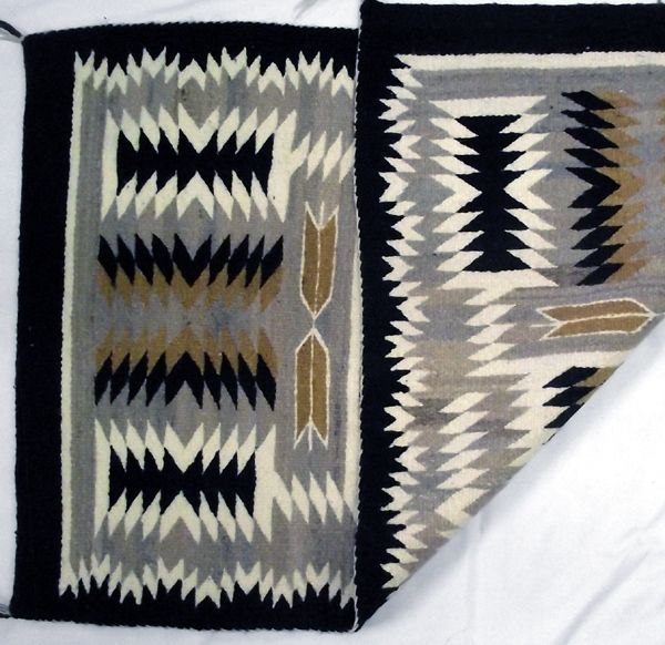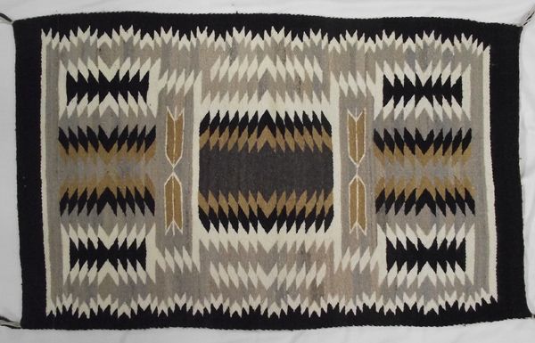 From the Nick & Suzanne Nickolas Collection we have a Navajo Traditional Two Grey Hills Rug, measures 26'' x 42'', very tightly woven, tassels intact. Spectacular Navajo textile!