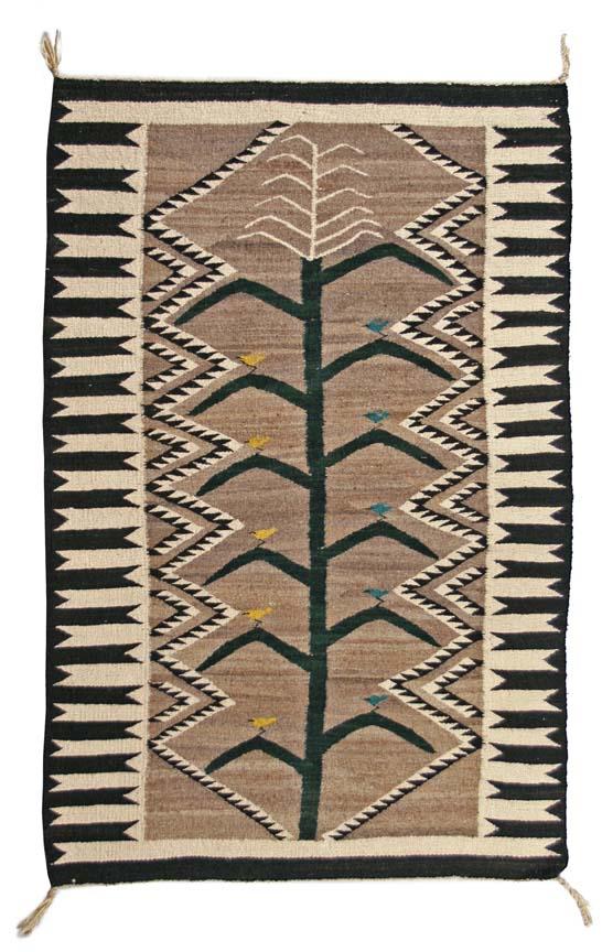 Navajo Pictorial Weaving. 53 ½" x 35". Tree of Life design. Circa 1960s. (est $600-900). For condition reports please visit: www.auctioninsantafe.com/cr2011.pdf