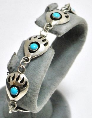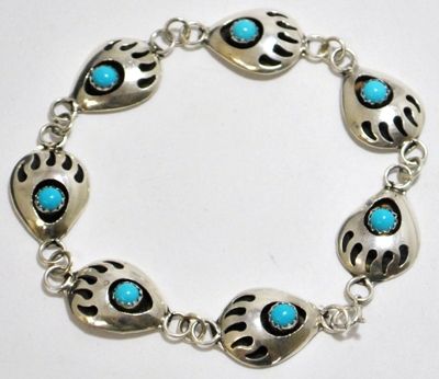 Navajo Turquoise Bear Paw Sterling Silver Link Bracelet - Joey McCray