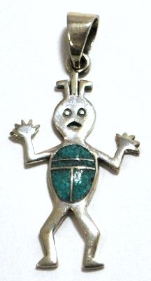 Navajo Turquoise Chip Inlay Sterling Silver Surprised Friend Pendant