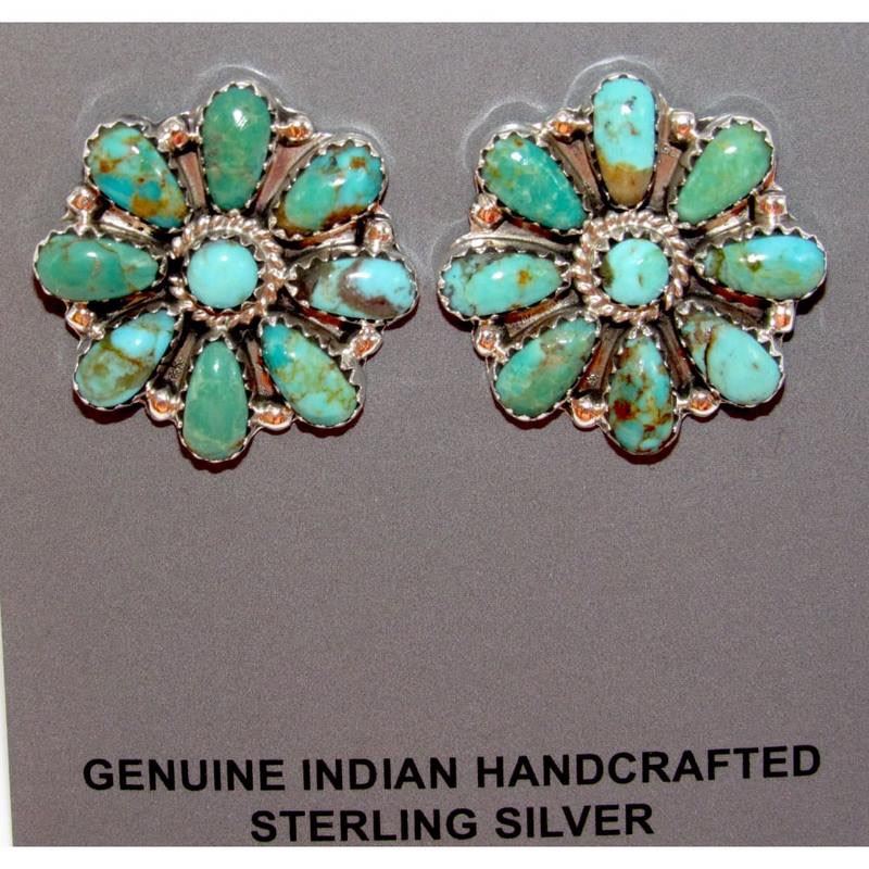 Navajo Turquoise Cluster Earrings Sterling Silver Native American 1"