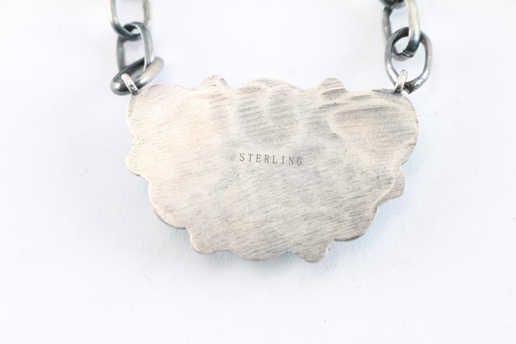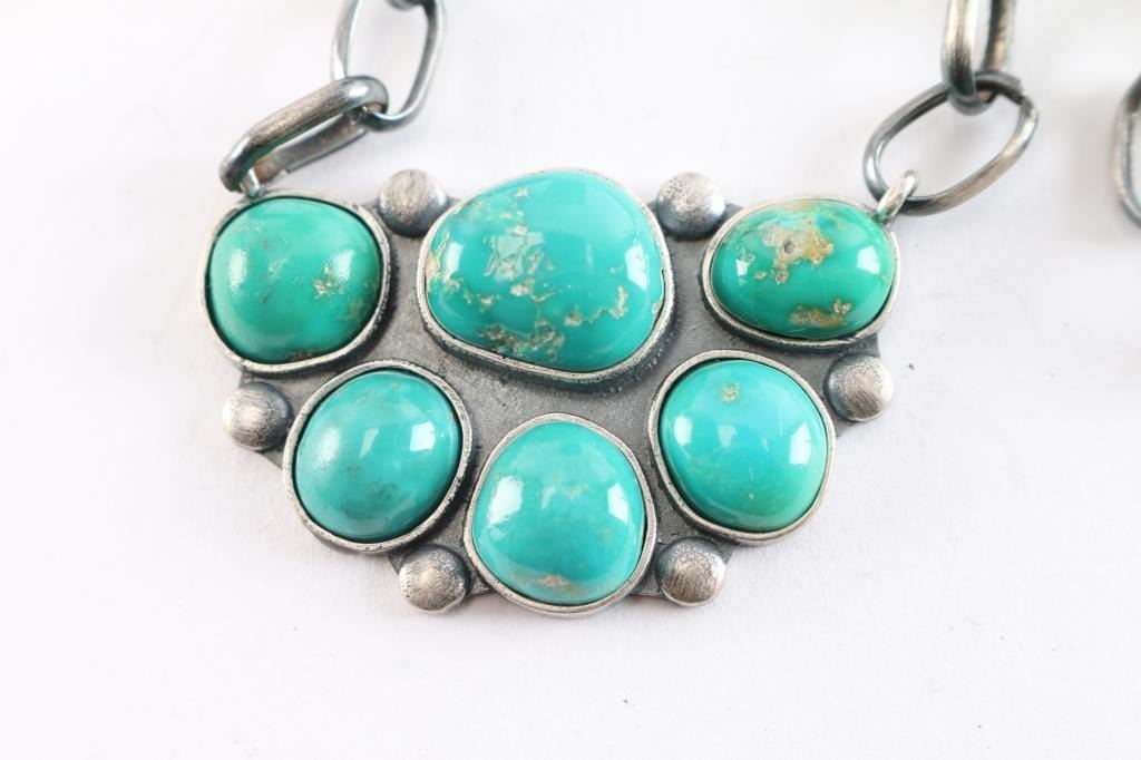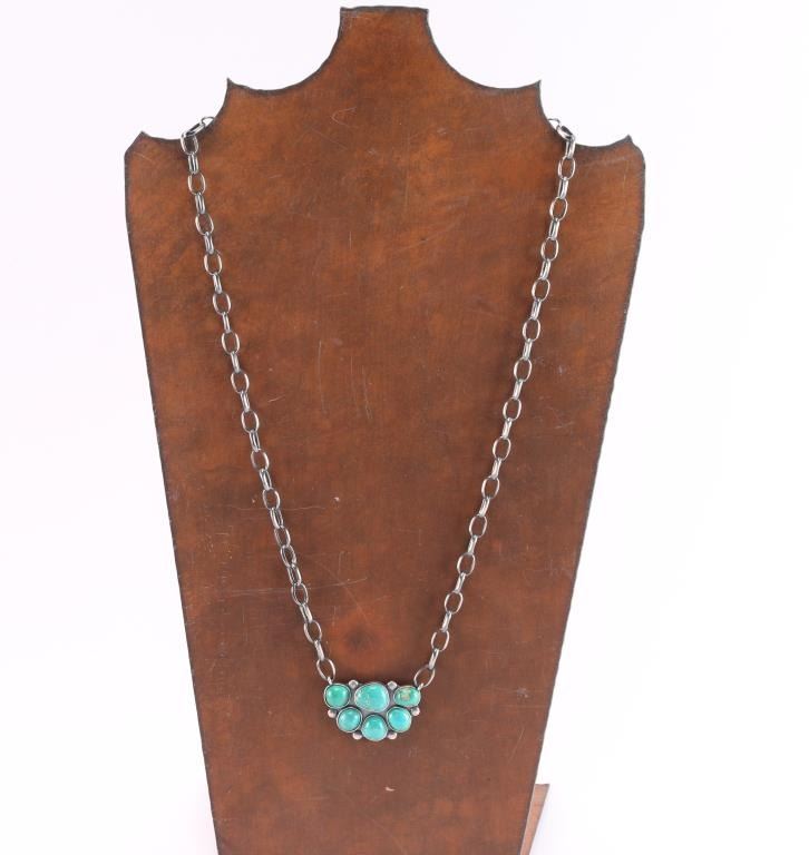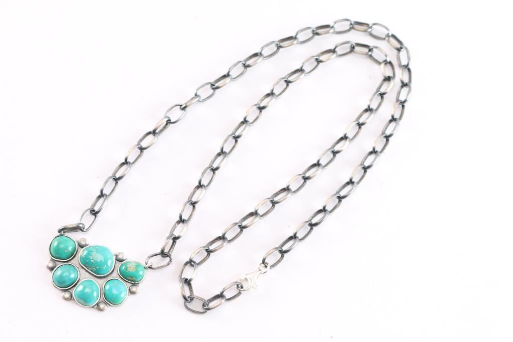 Six stone pendant on fixed loop chain, satin sterling silver. 13.5" from drop.