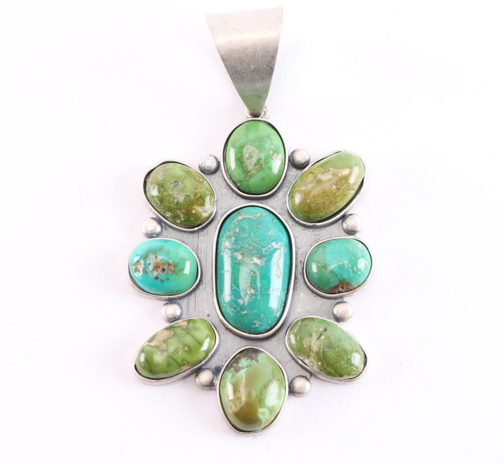 Green Turquoise Set In A Satin Finish Sterling Silver.