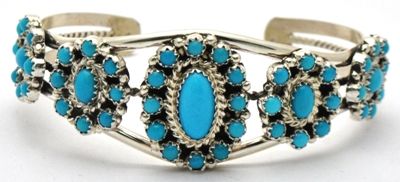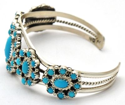 Navajo Turquoise Cluster Sterling Silver Bracelet - Nathaniel Curley