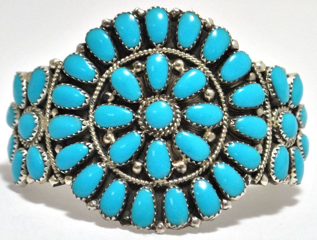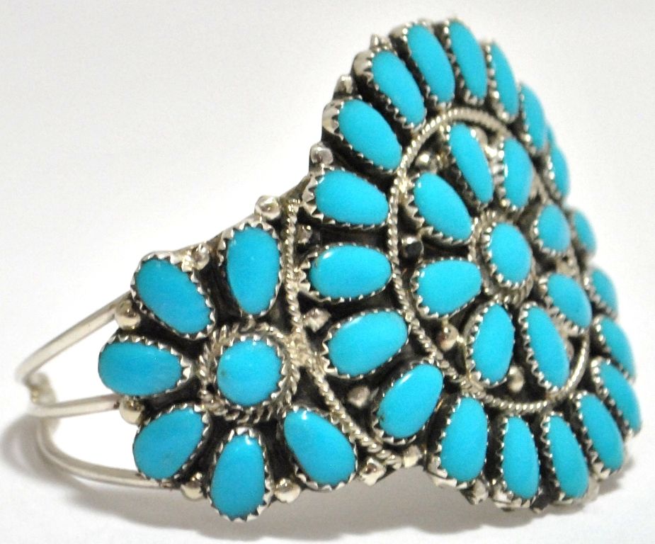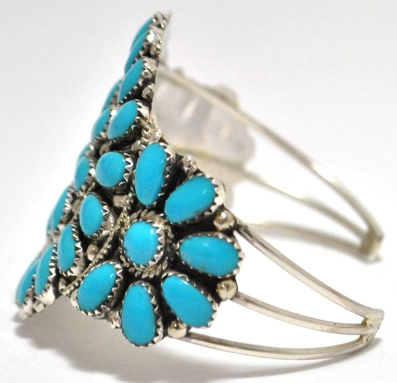 Navajo Turquoise Cluster Sterling Silver Cuff Bracelet - Juliana Williams