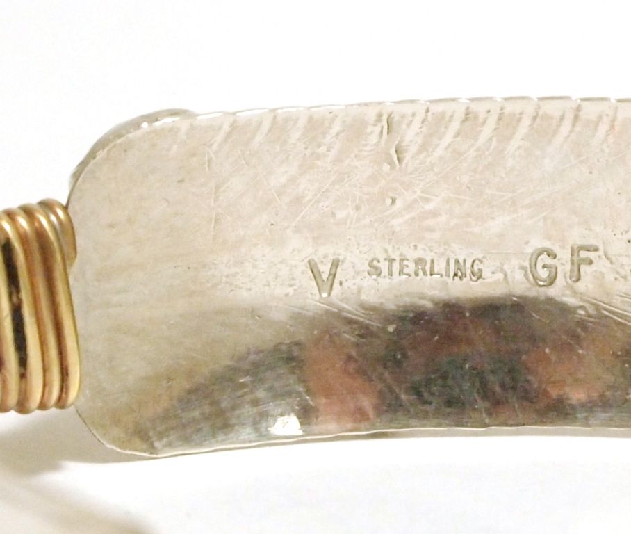 Navajo Turquoise & Coral 12k Gold Fill over Sterling Silver Feather Cuff Bracelet - Virgil Reader