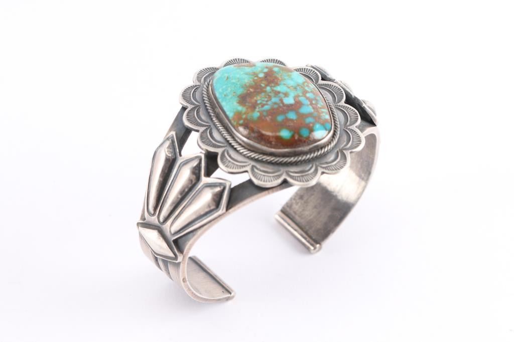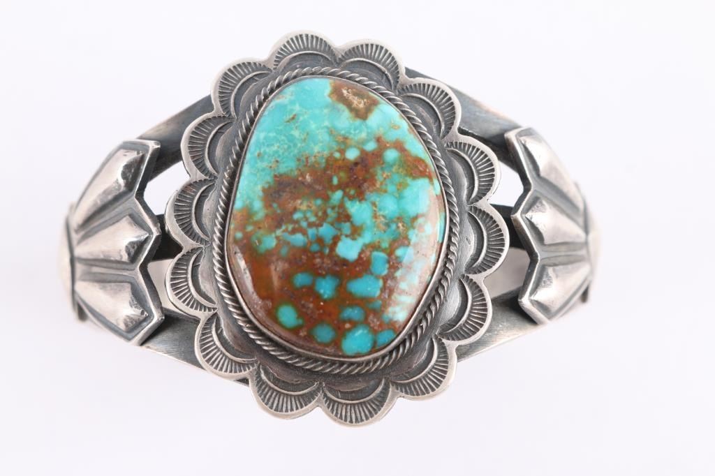 maker marked PJ Begayon back set in sterling silver. 7.5"including gap.