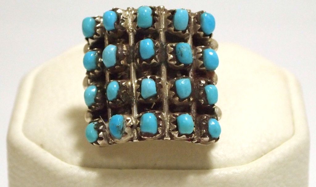 Navajo Turquoise Dots Sterling Silver Men's Ring - Irene J