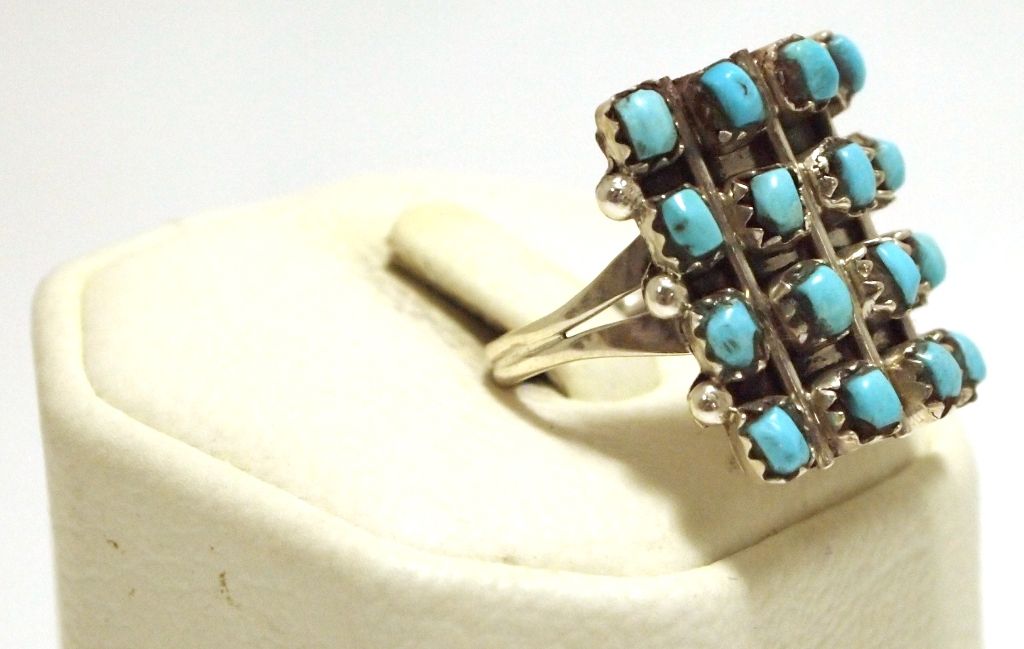 Navajo Turquoise Dots Sterling Silver Women's Ring - Irene J