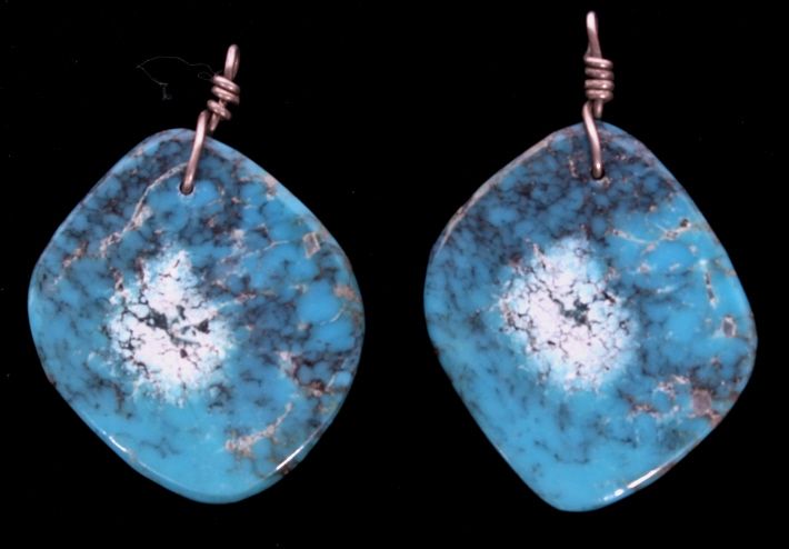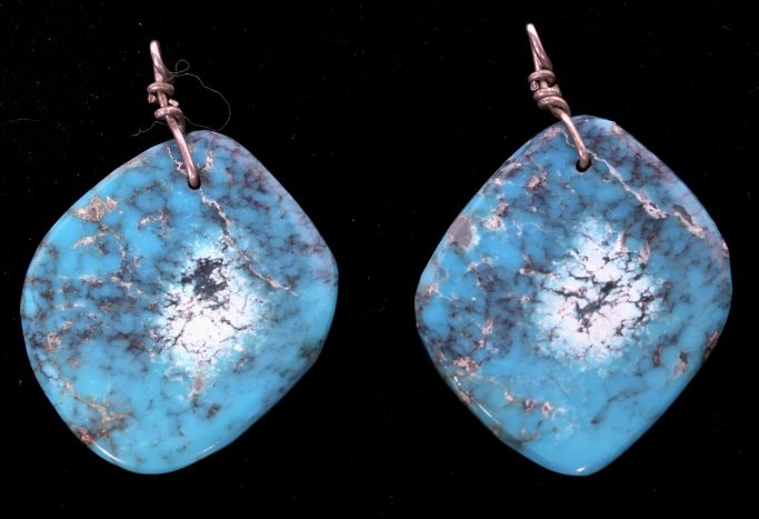 These are two solid turquoise stones that were hand formed by the Navajo Native Americans and made to be earrings. These are missing the earring connection, but are a great collectible from the 1960's. The stones measures 2"x1 3/8"