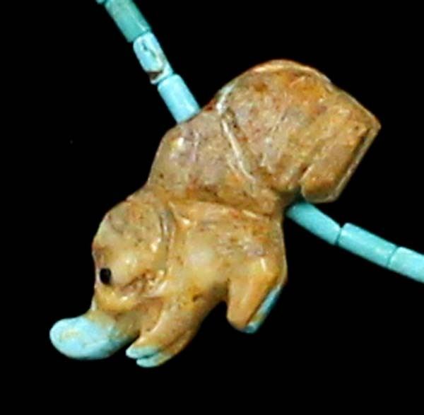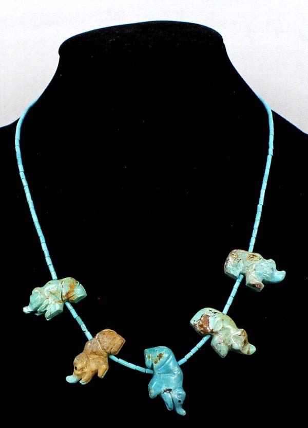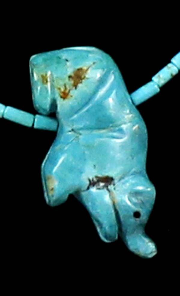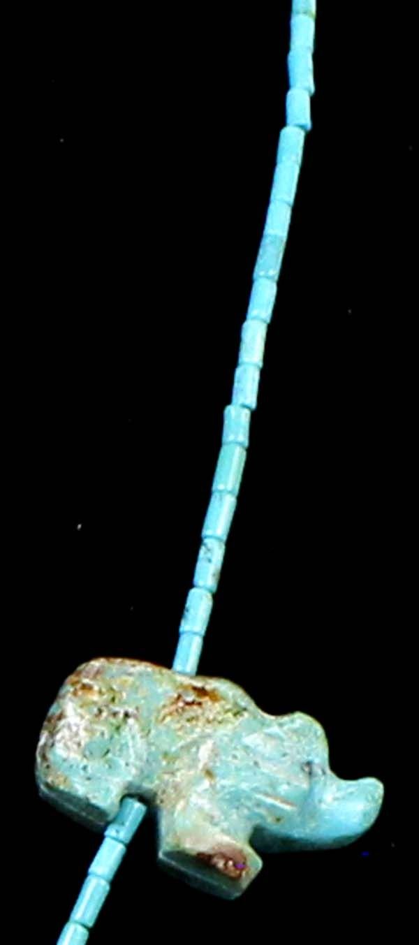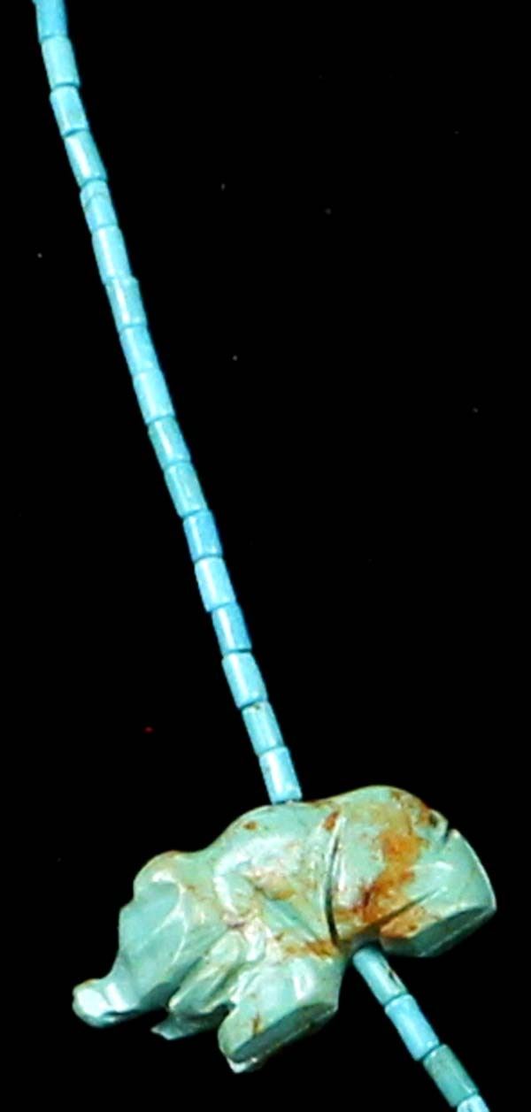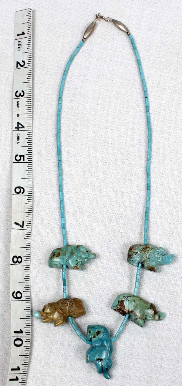 Native American Navajo Turquoise Elephant Fetish Necklace, measures 20''L end to end, pendant measures .5'' x 1.5'', sterling conical beads and clasp, turquoise beads