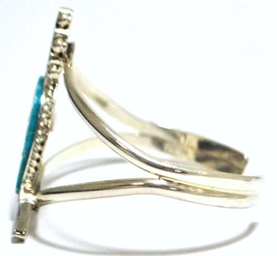 Navajo Turquoise Inlay Kokopelli Silver Cuff Bracelet - Francis
