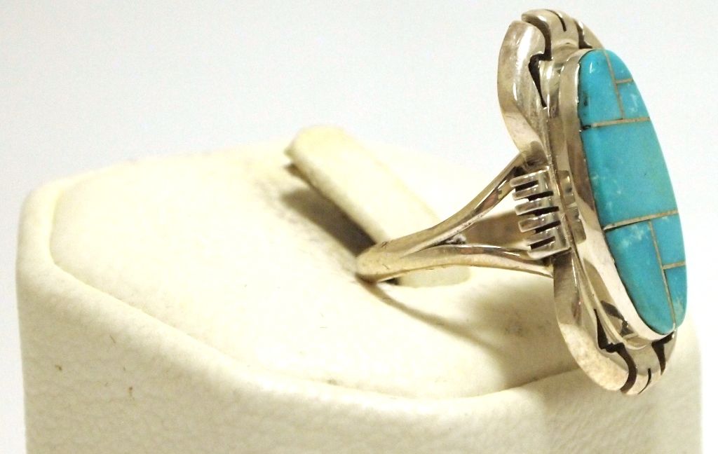 Navajo Turquoise Inlay Sterling Silver Women's Ring - Ray Jack