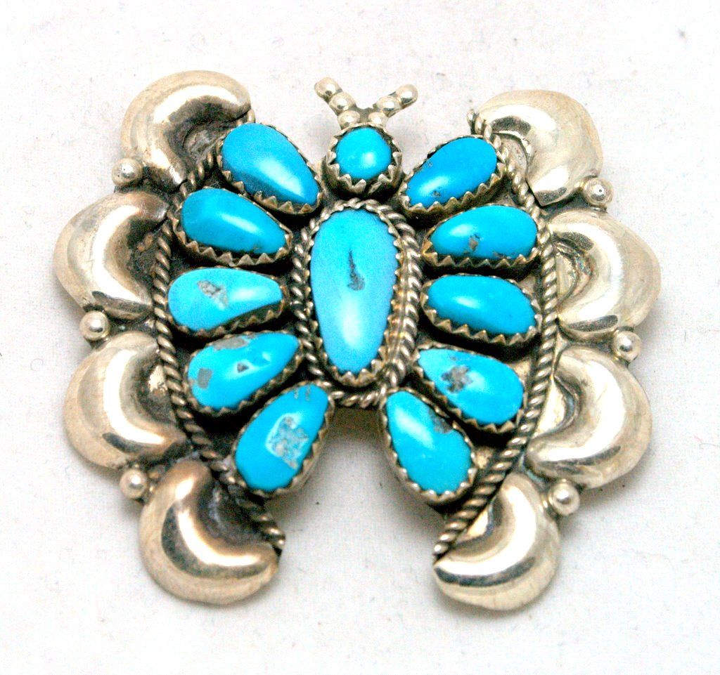 Navajo Turquoise Large Stone Butterfly Pendant & Pin