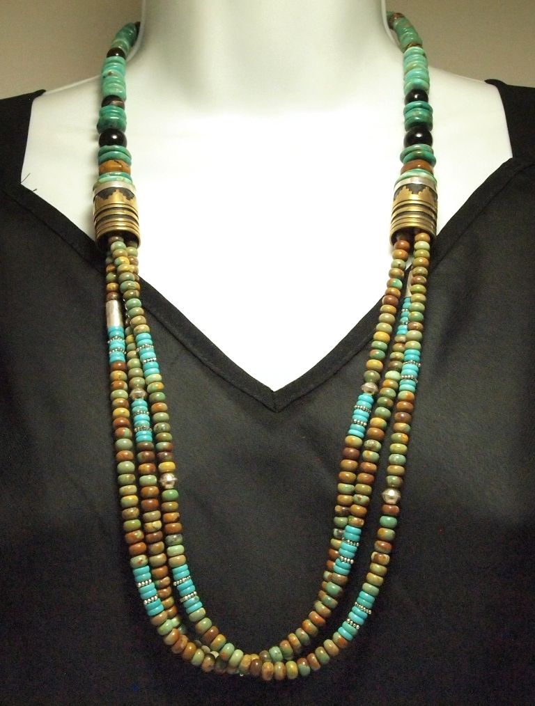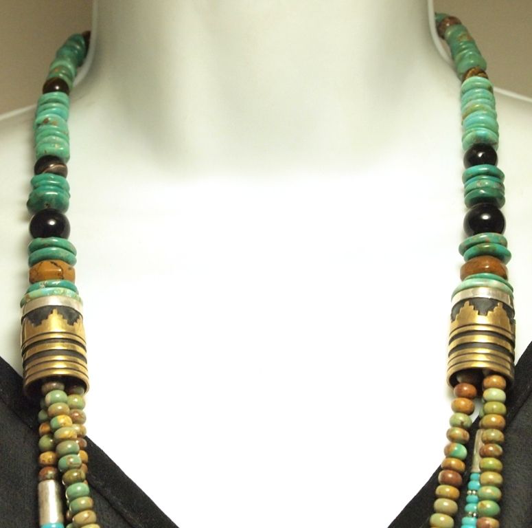 Navajo Turquoise & Multi-Stone 3-Strand Necklace - Tommy Singer