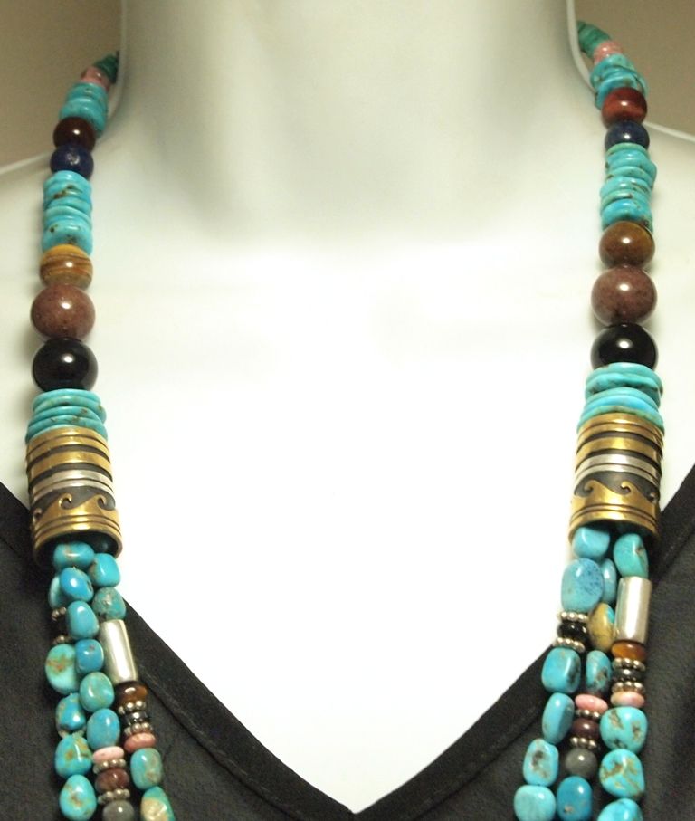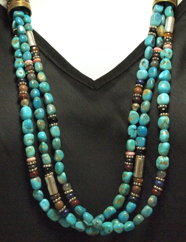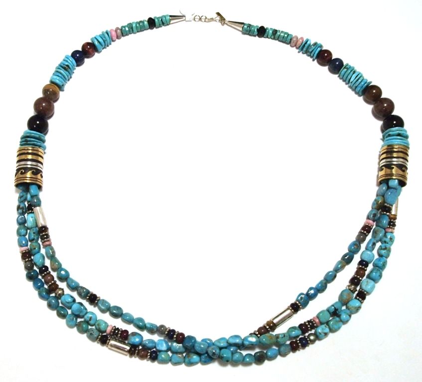 Navajo Turquoise & Multi-Stone 3-Strand Necklace - Tommy Singer