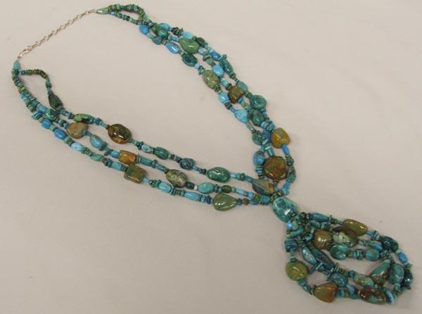 Navajo Turquoise Multi Strand Necklace, necklace measures end to end 26.5'' and the extension is 5''. SHI $15.