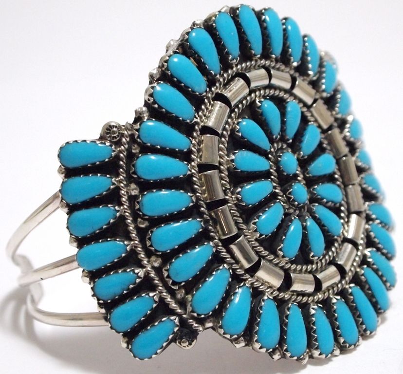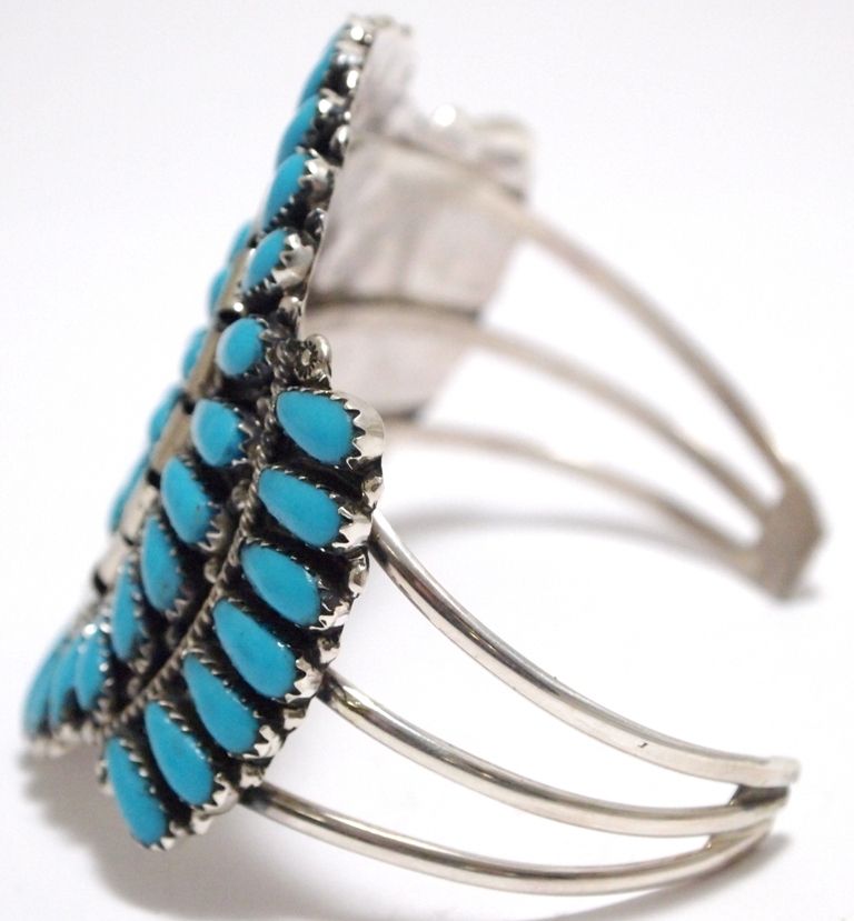 Navajo Turquoise Needlepoint Cluster Sterling Silver Cuff Bracelet - Juliana Williams