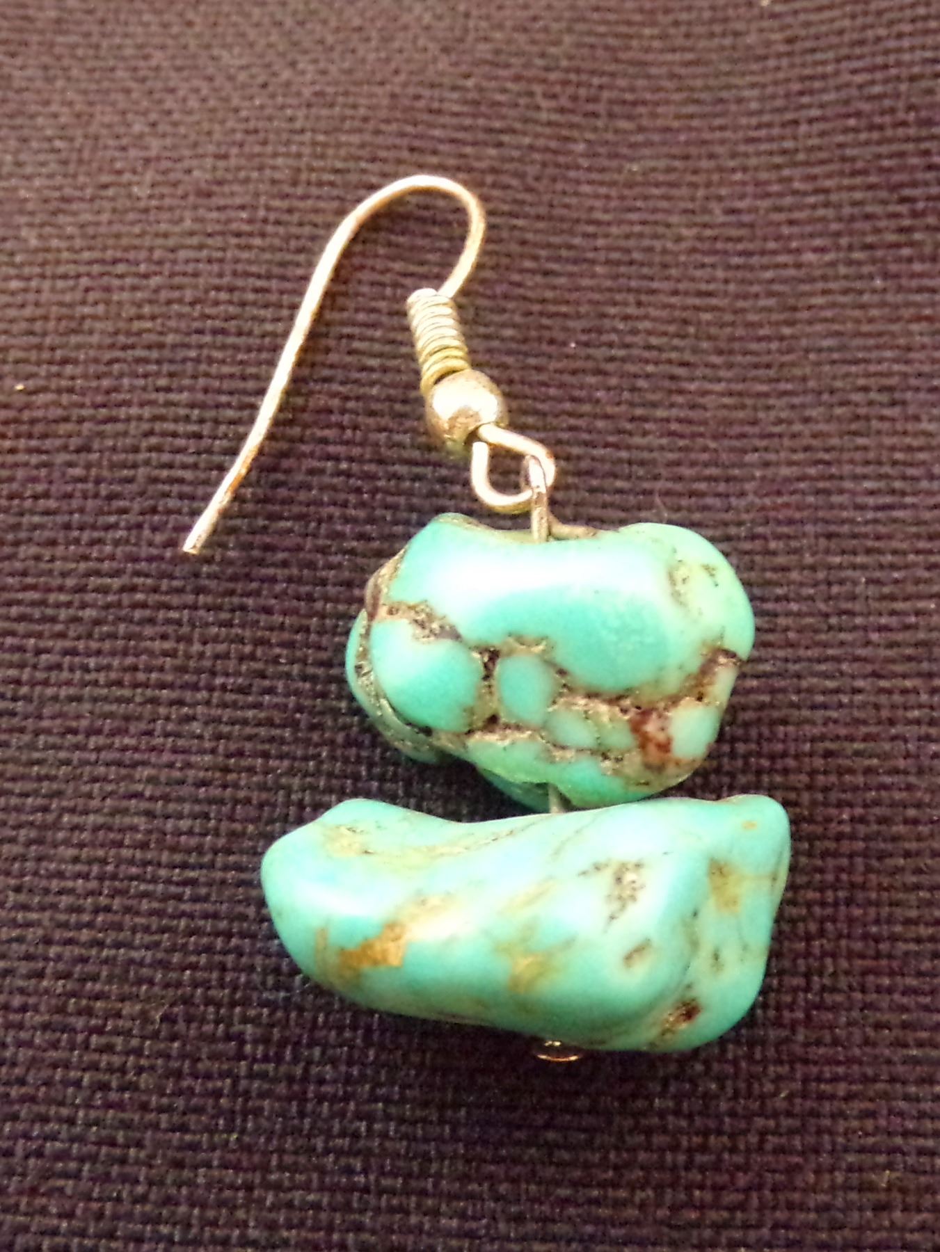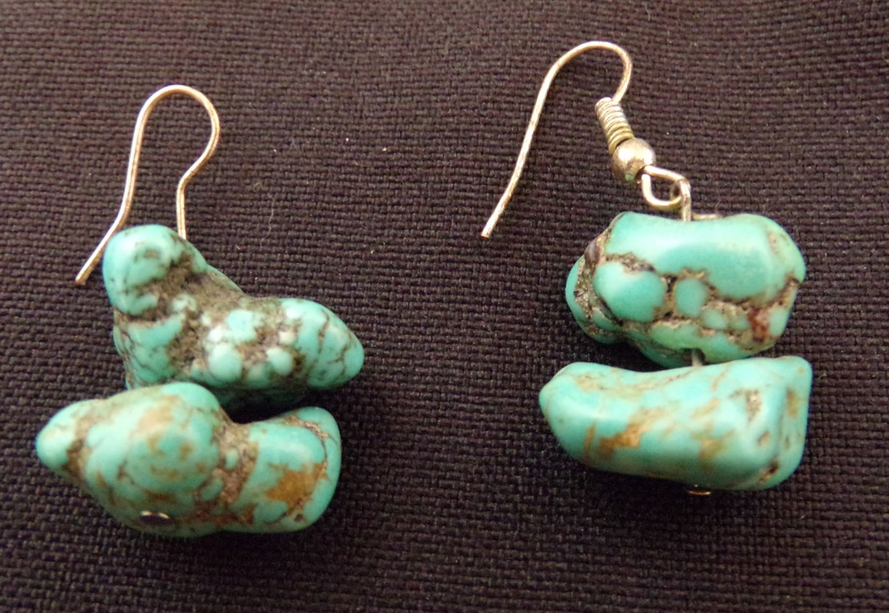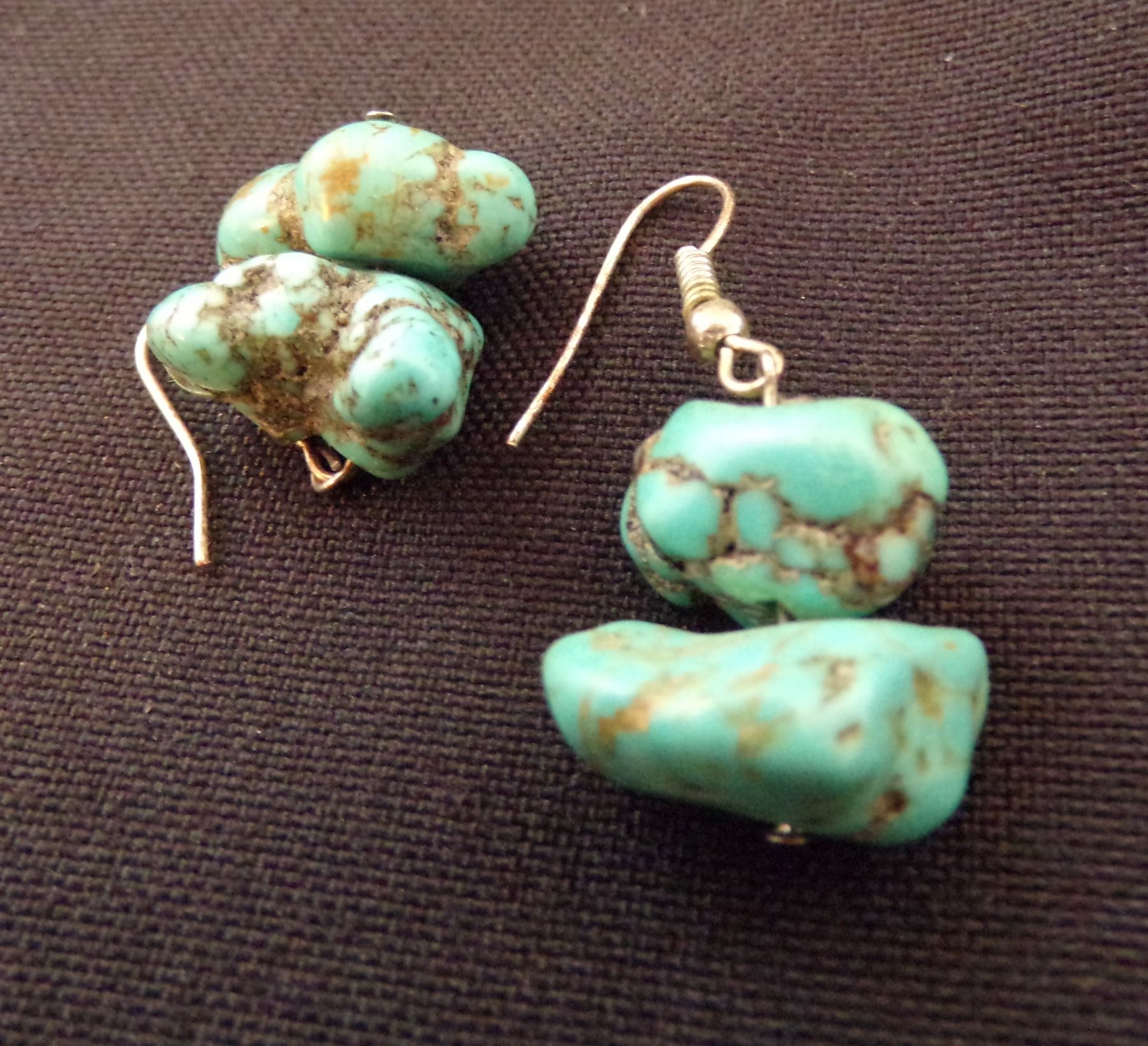 Native American Navajo Turquoise Nugget Earrings, measures 1.5''L which includes the wire, 58.2 total carat wt. (which includes the wires)