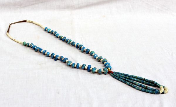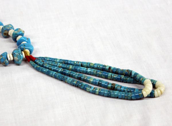 Navajo Turquoise Nugget Jocklas Necklace, measures 32''L, largest nugget is .5'', and jocklas are 5.5''L, gorgeous robin egg blue nuggets, puka shell heishi, coral accents, sterling cones and clasp, stunning traditional piece