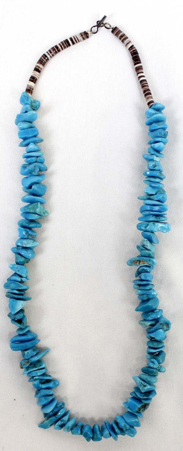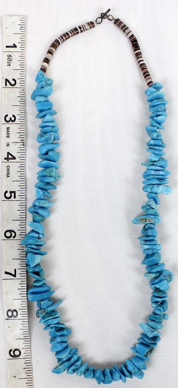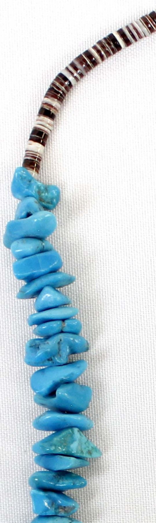Native American Navajo Turquoise Nugget & Shell Heishi Necklace, measures 20''L end to end, longest nugget measures 7/8''L